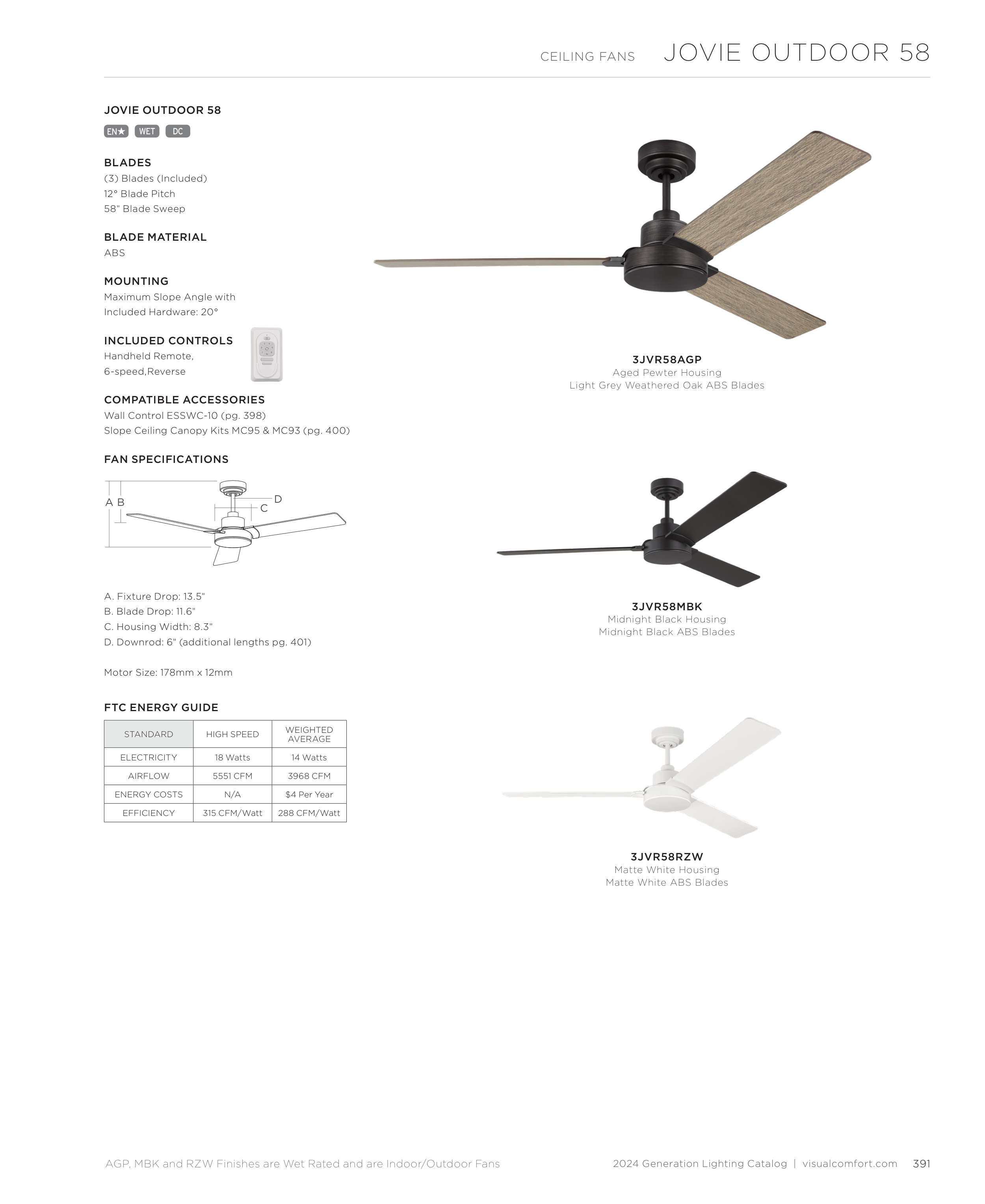 AGP, MBK and RZW Finishes are Wet Rated and are Indoor/Outdoor Fans