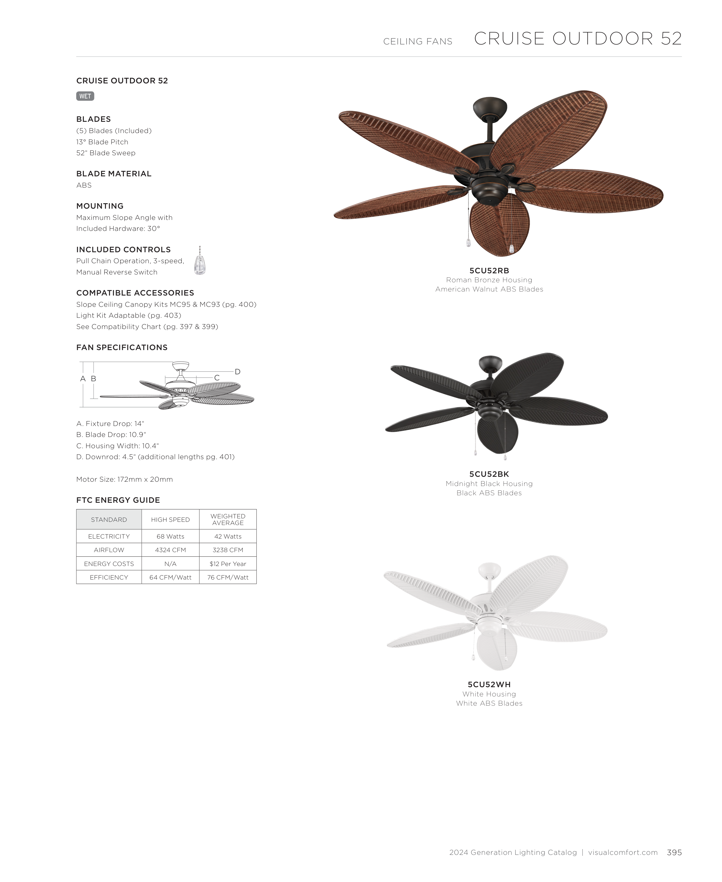 D. Downrod: 4.5" (additional lengths pg. 401)
