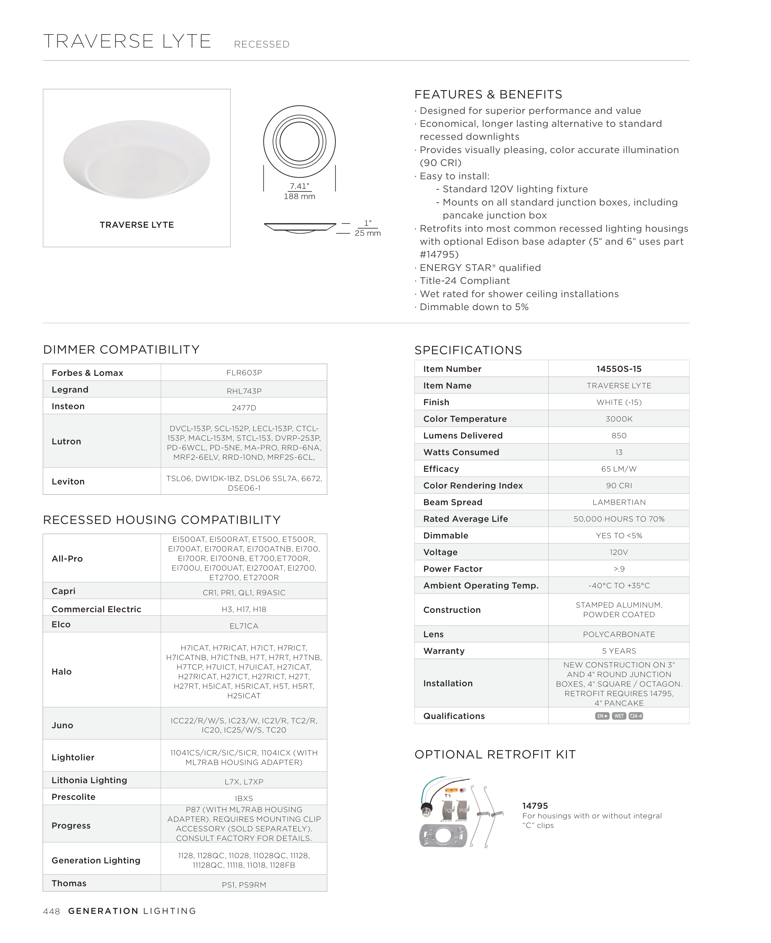∙ Retrofits into most common recessed lighting housings