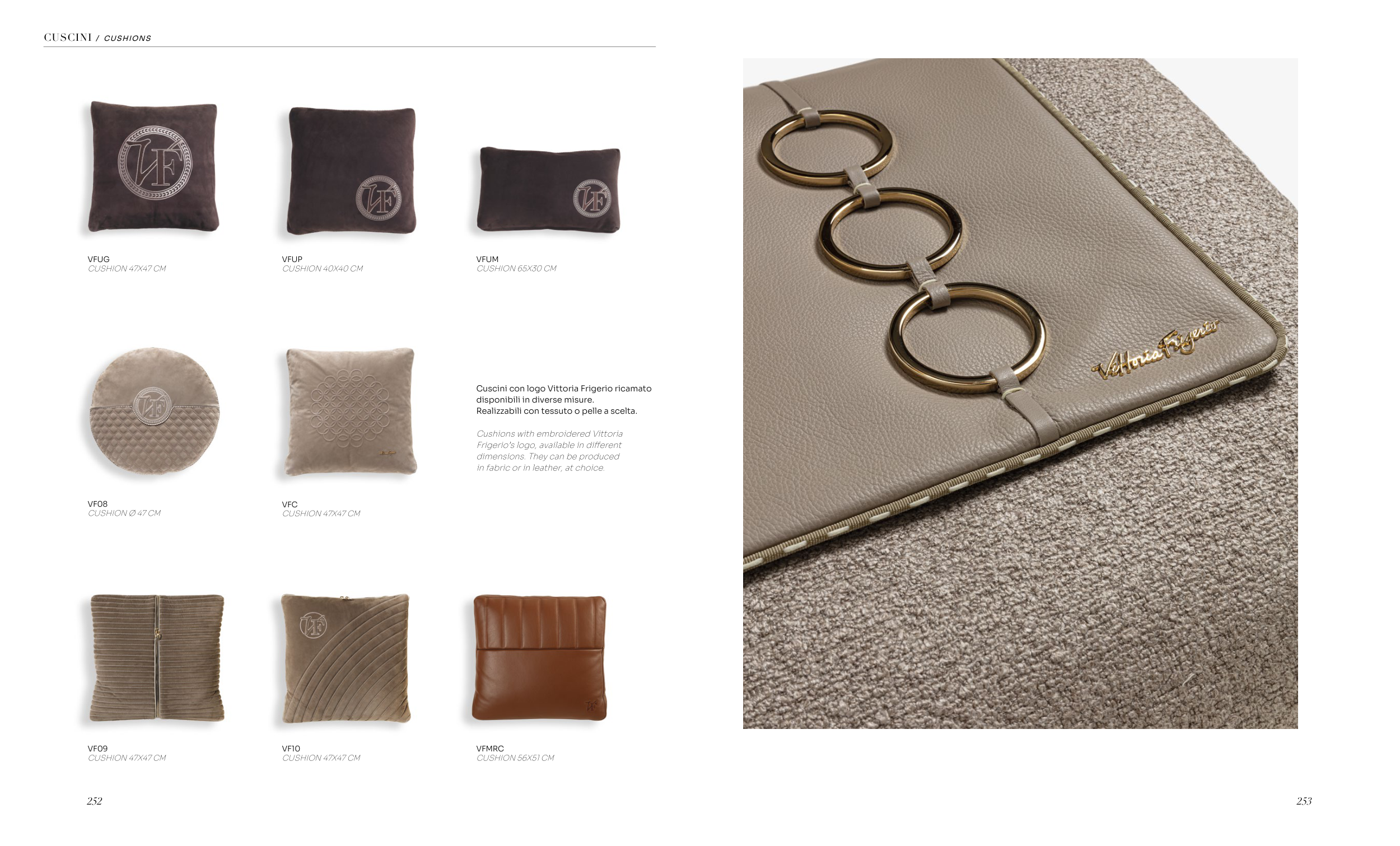 Cuscini con logo Vittoria Frigerio ricamato
