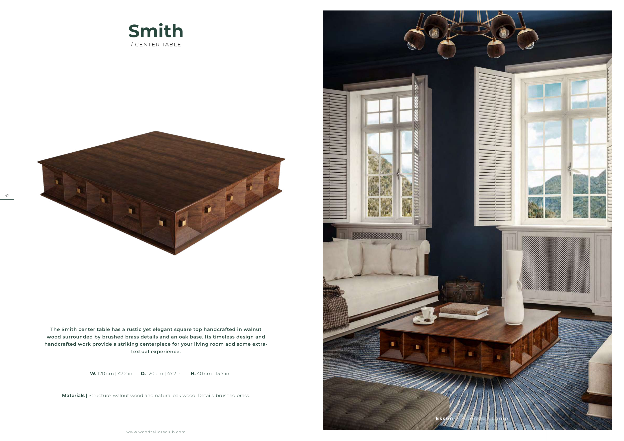 Materials | Structure: walnut wood and natural oak wood; Details: brushed brass.