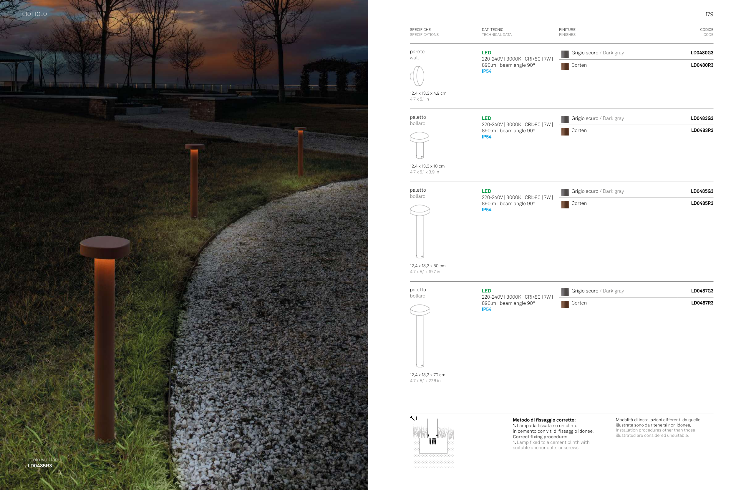 1. Lampada fissata su un plinto