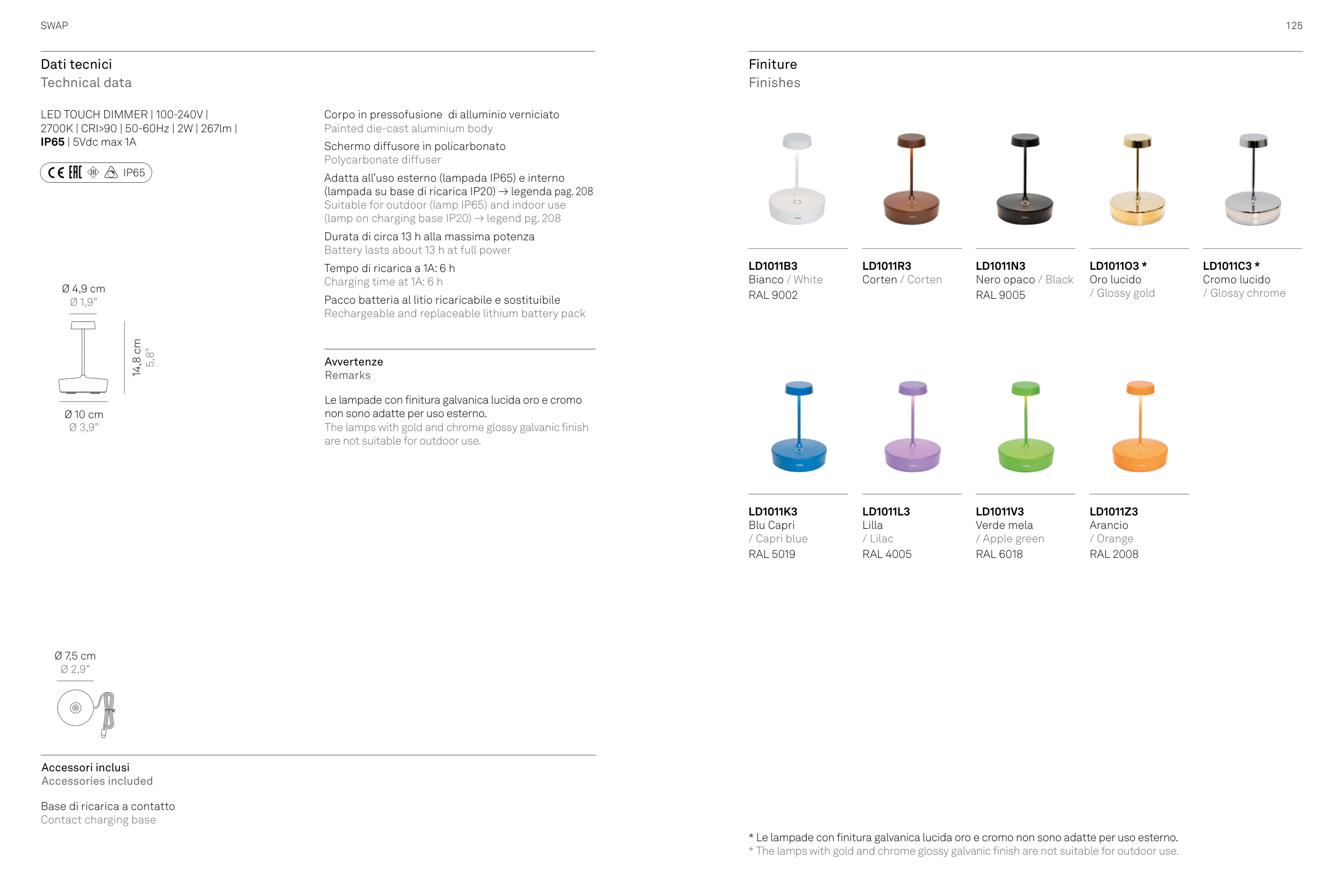 (lampada su base di ricarica IP20) → legenda pag. 208