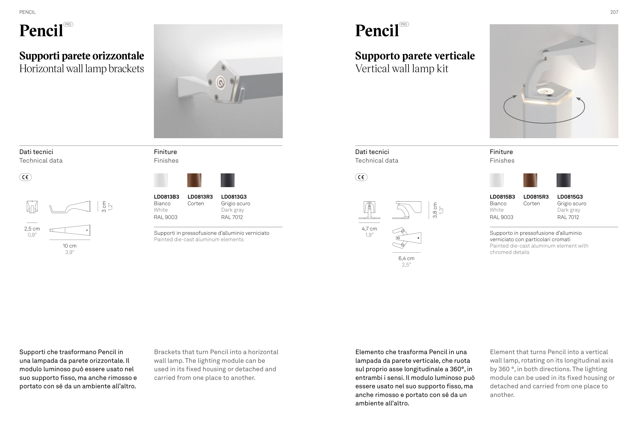 lampada da parete verticale, che ruota