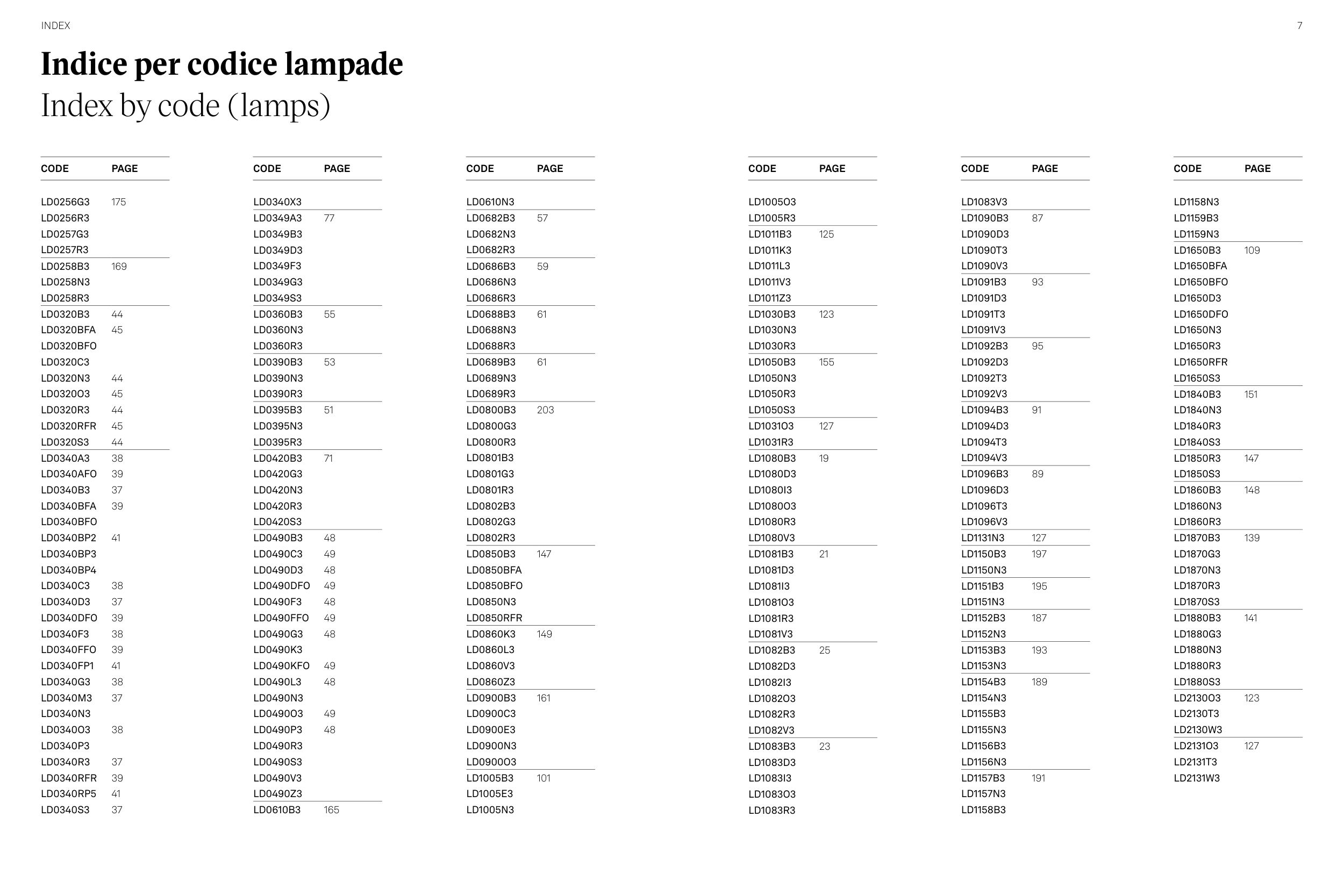 Index by code (lamps)