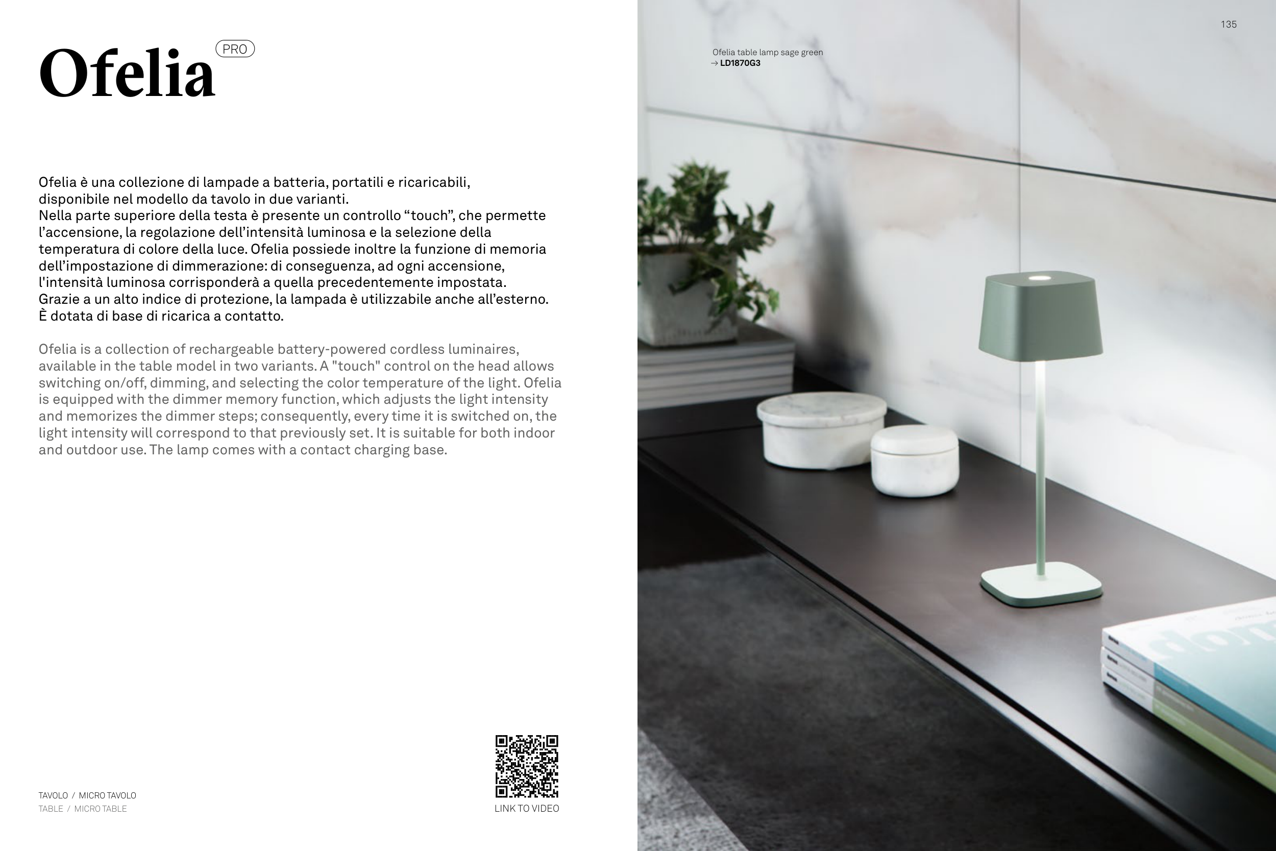 Ofelia is a collection of rechargeable battery-powered cordless luminaires,