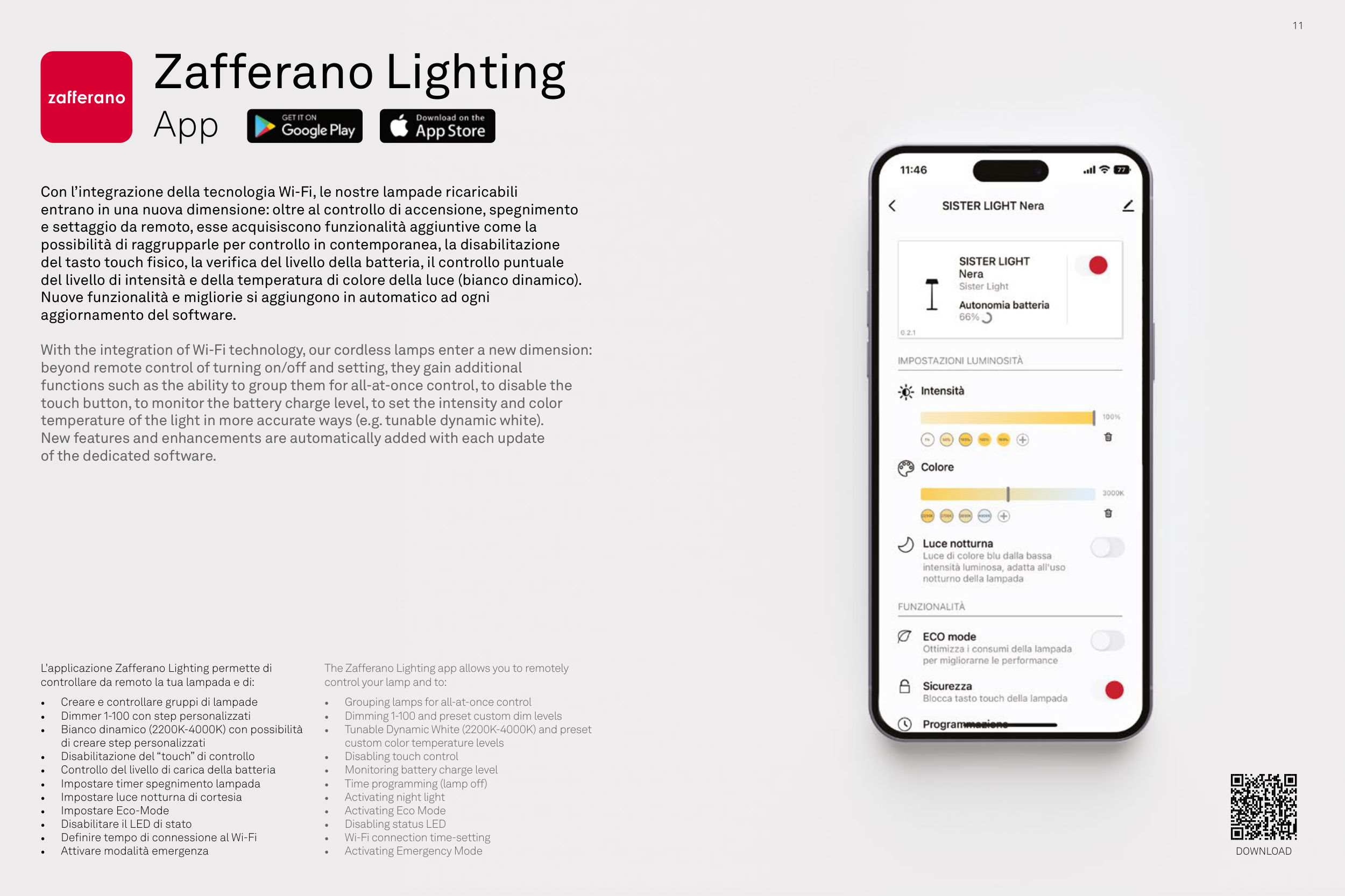 The Zafferano Lighting app allows you to remotely
