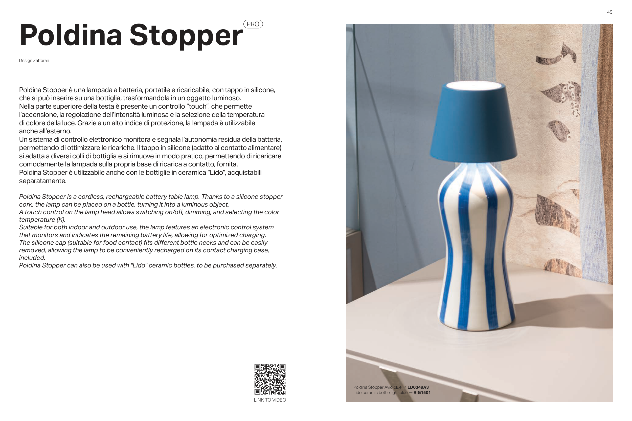 Poldina Stopper can also be used with "Lido" ceramic bottles, to be purchased separately.