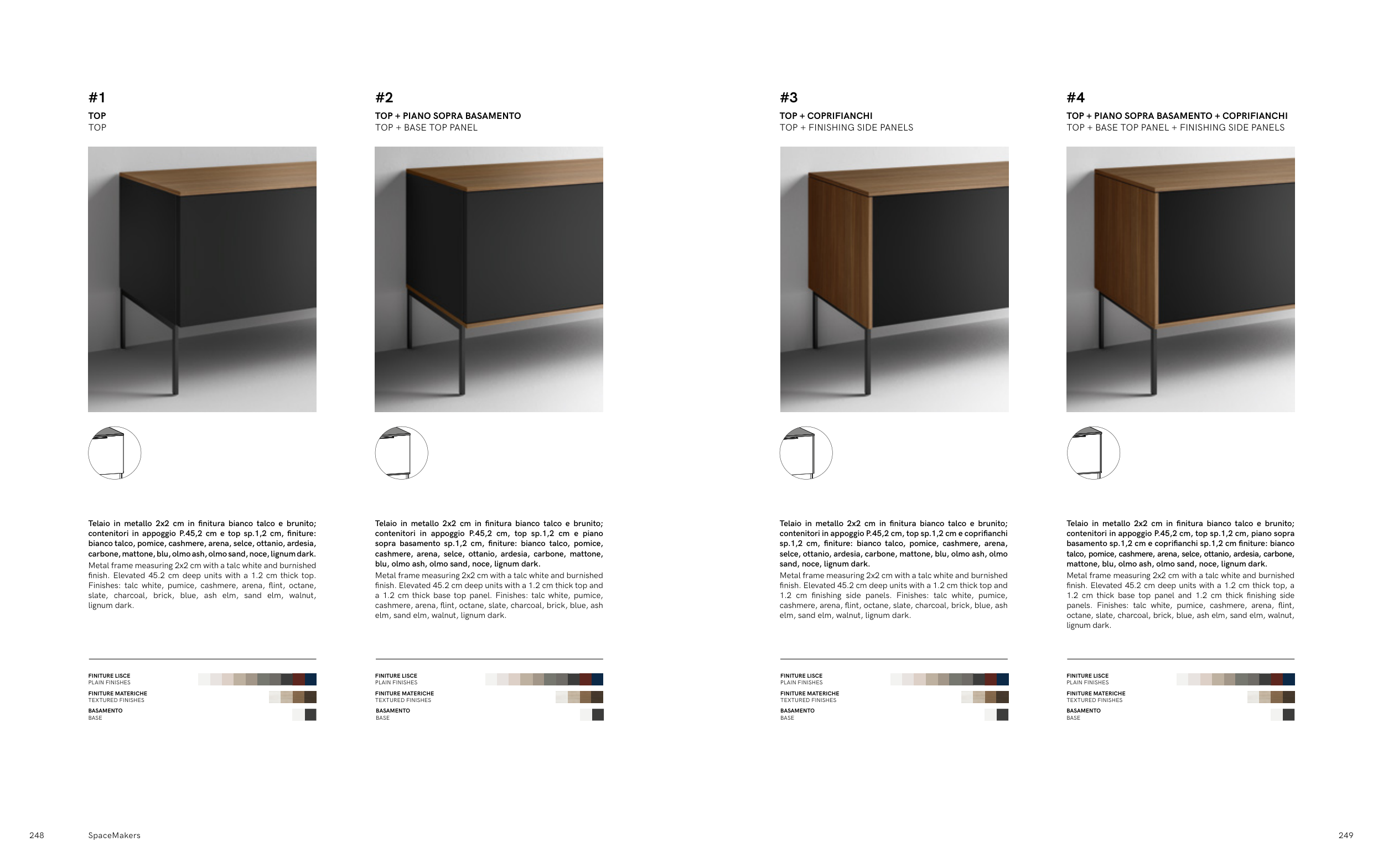 a 1.2 cm thick base top panel. Finishes: talc white, pumice,