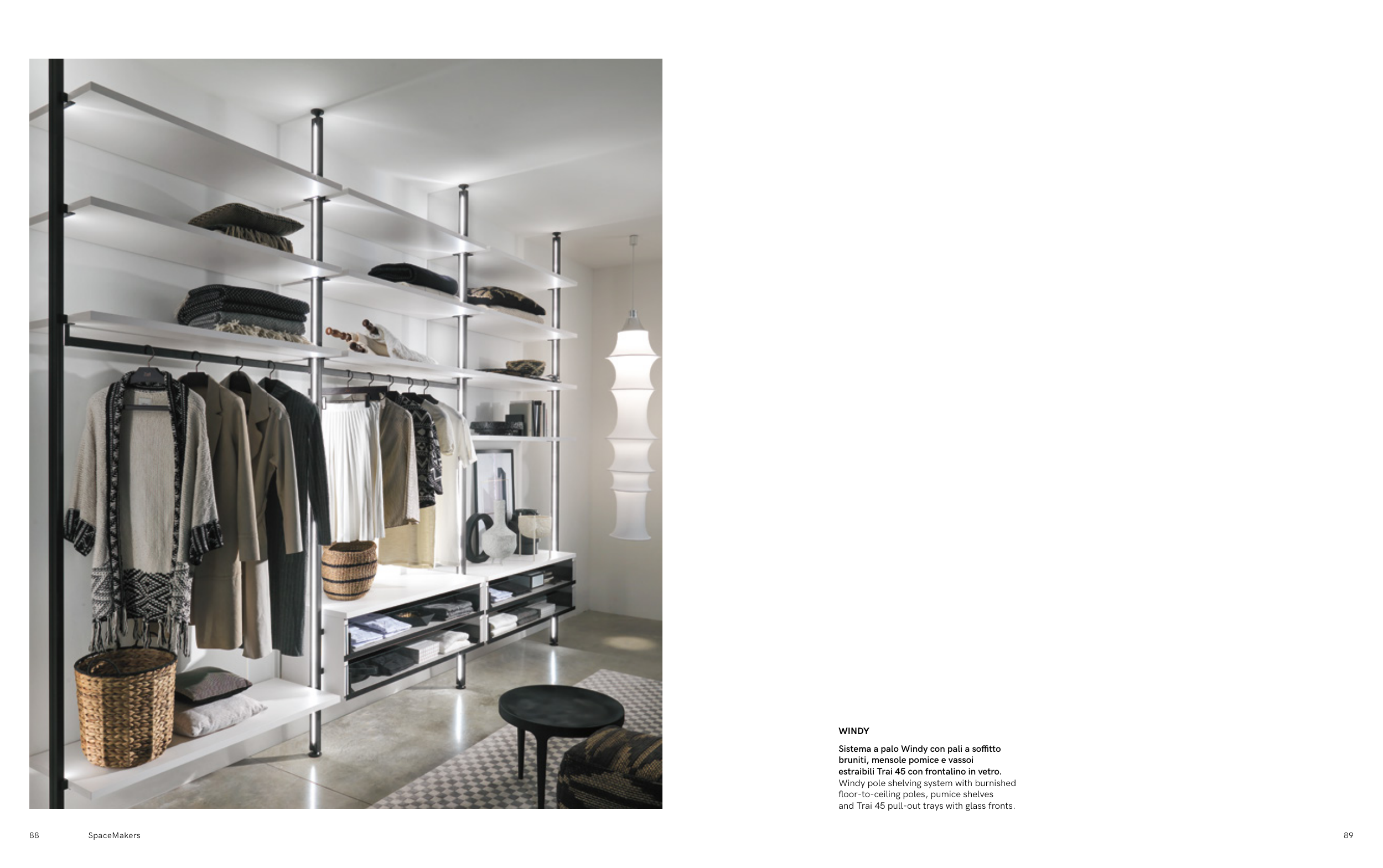 floor-to-ceiling poles, pumice shelves