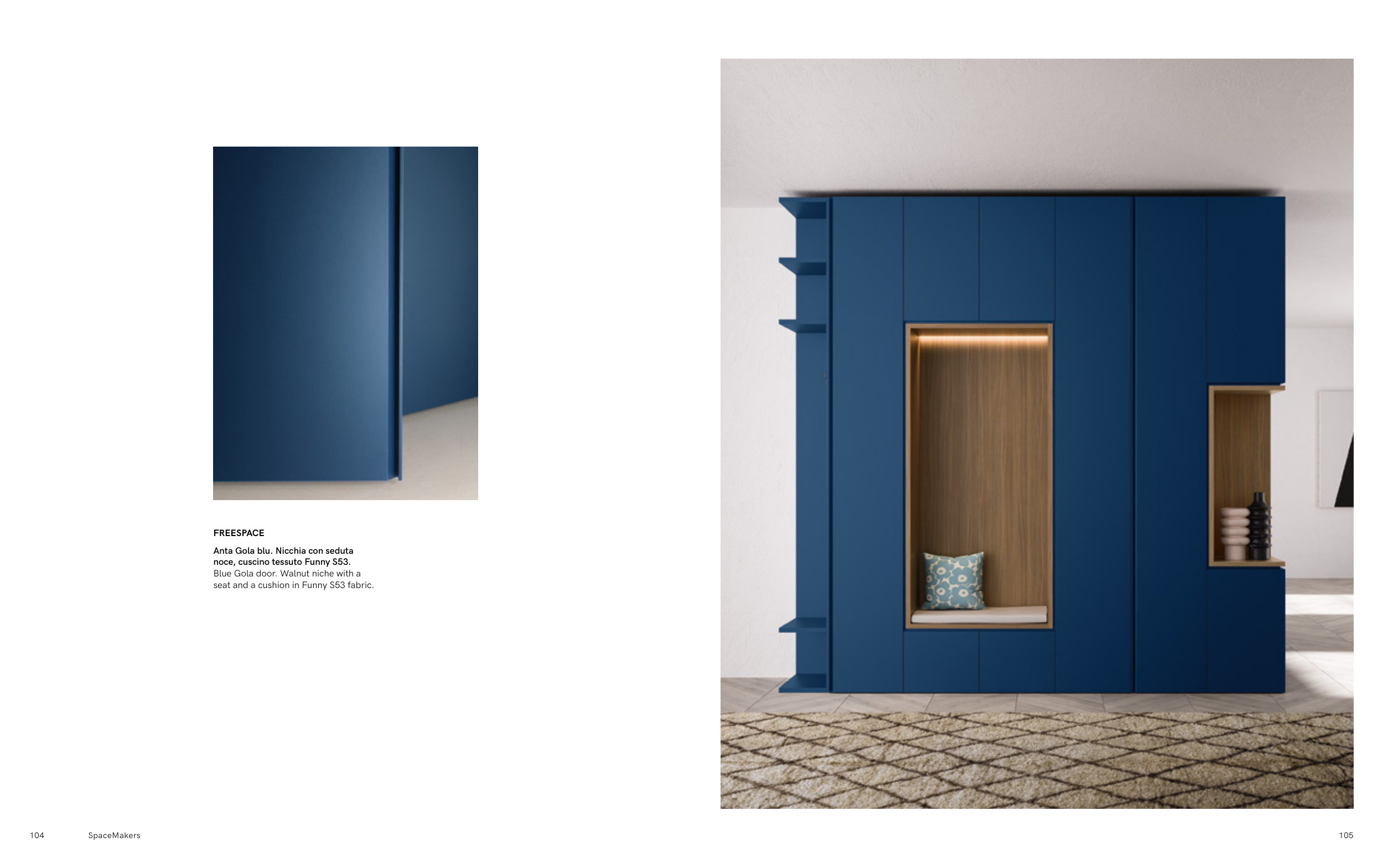 Blue Gola door. Walnut niche with a