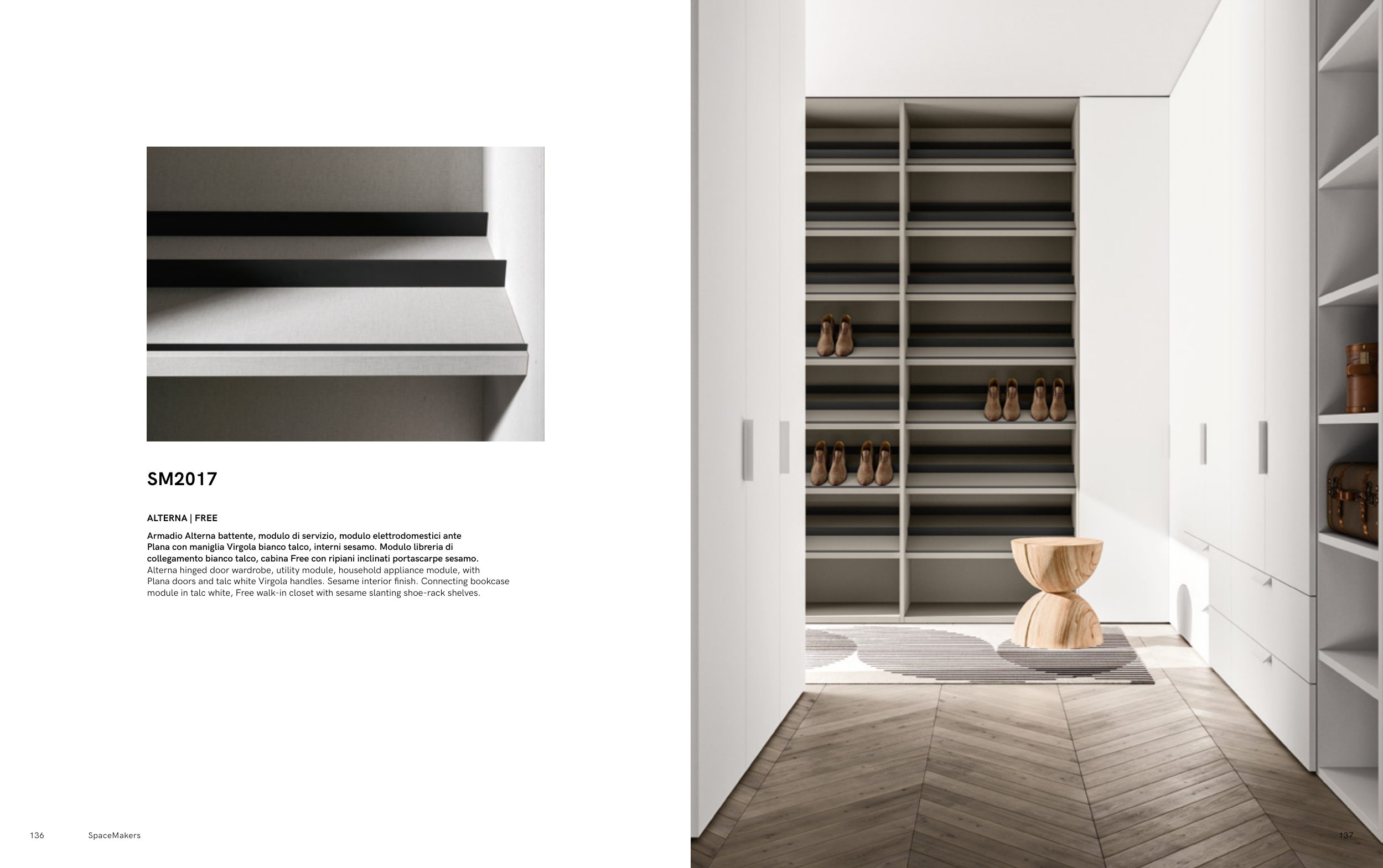collegamento bianco talco, cabina Free con ripiani inclinati portascarpe sesamo.