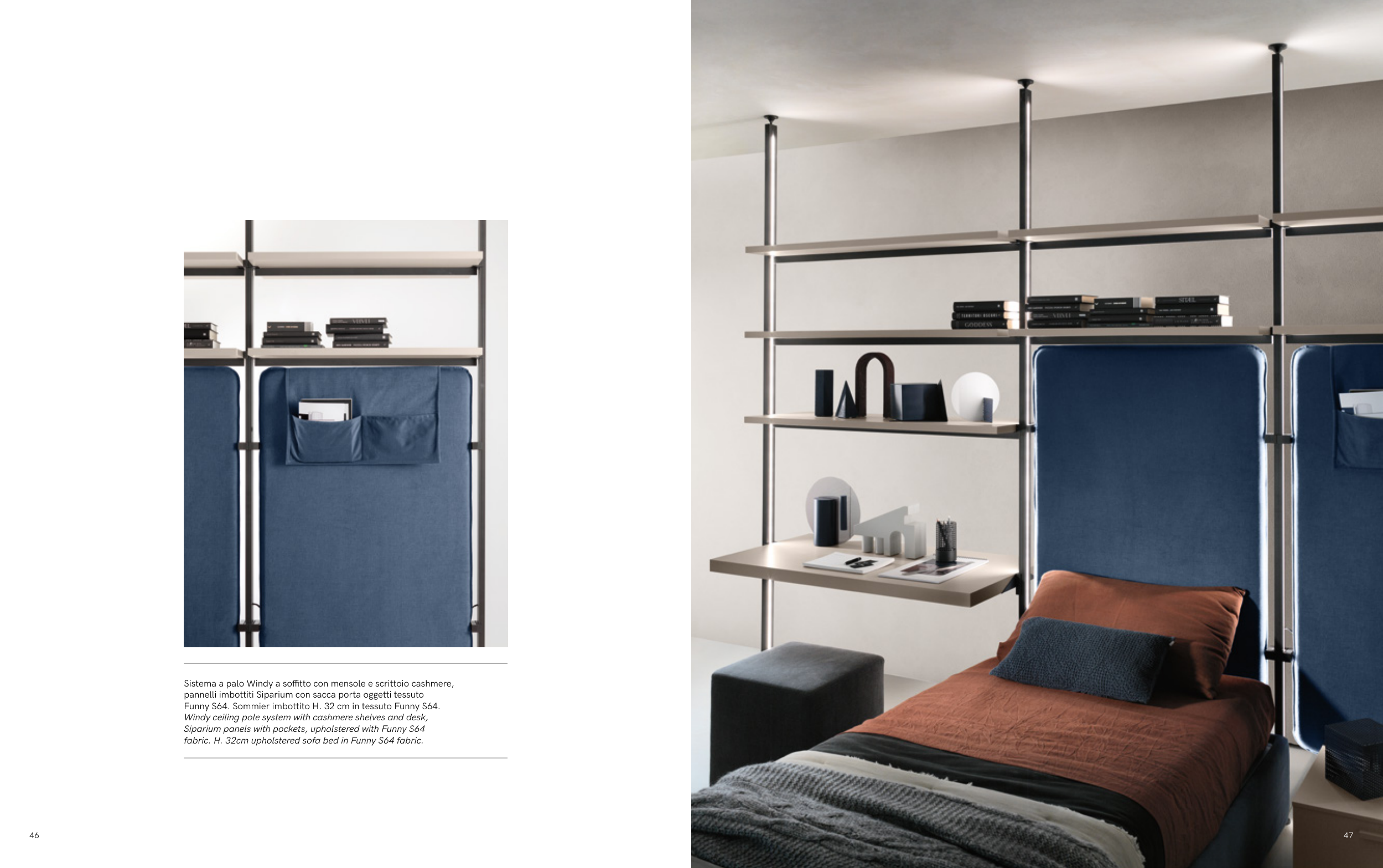 Sistema a palo Windy a soffitto con mensole e scrittoio cashmere,