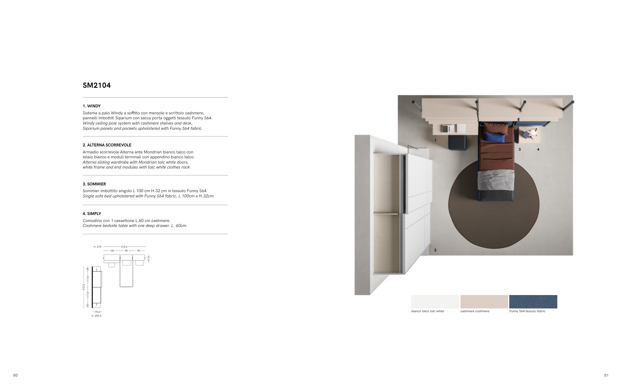 Sistema a palo Windy a soffitto con mensole e scrittoio cashmere,
