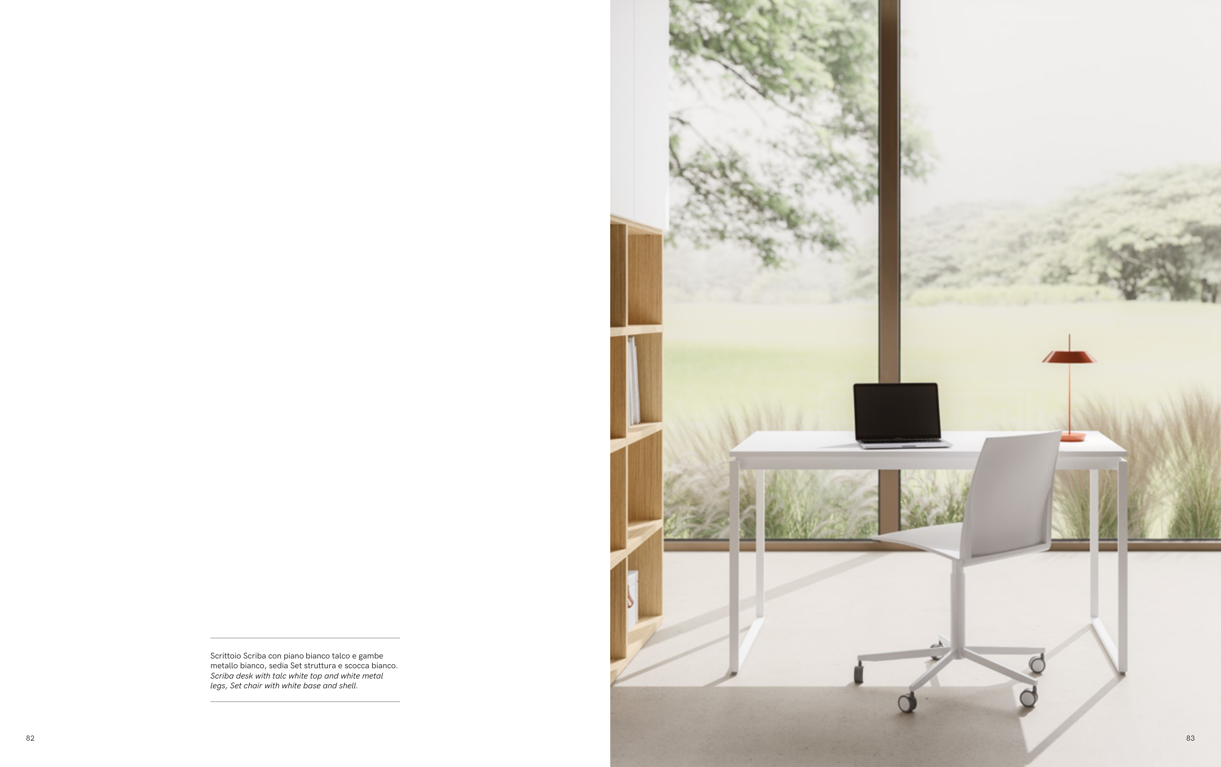 Scriba desk with talc white top and white metal