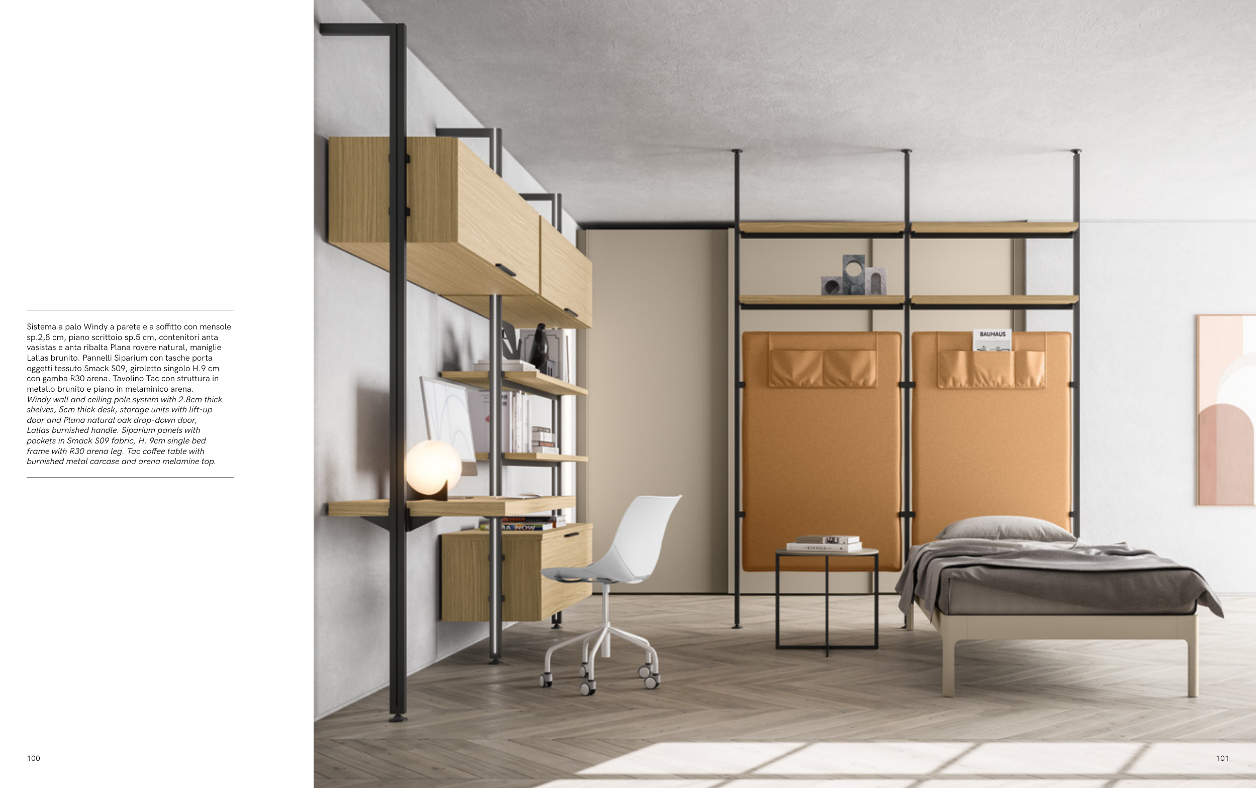 Sistema a palo Windy a parete e a soffitto con mensole