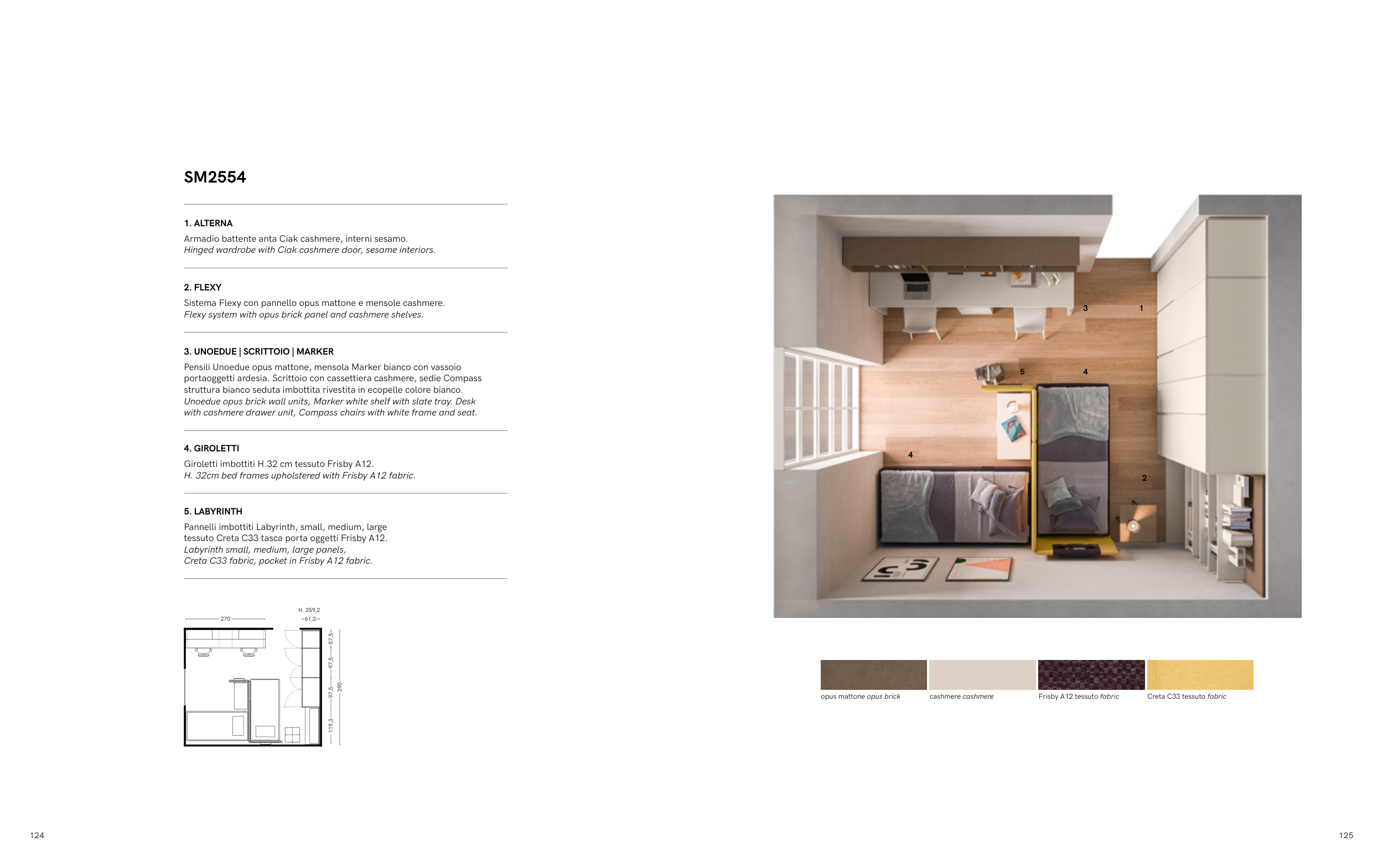Flexy system with opus brick panel and cashmere shelves.