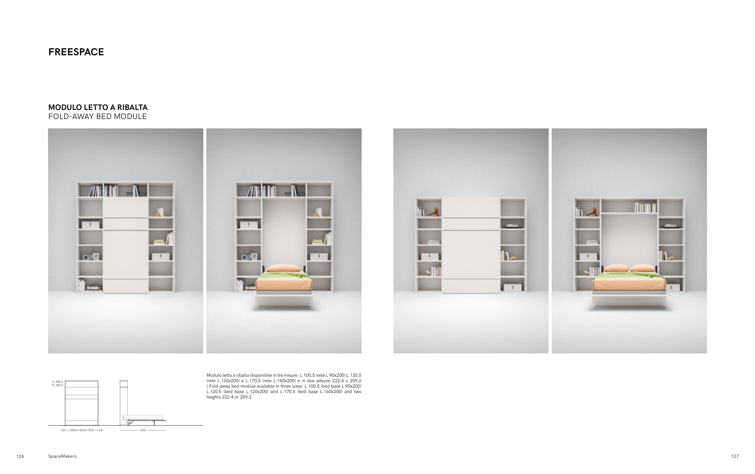 | Fold-away bed module available in three sizes: L.100.5 (bed base L 90x200)