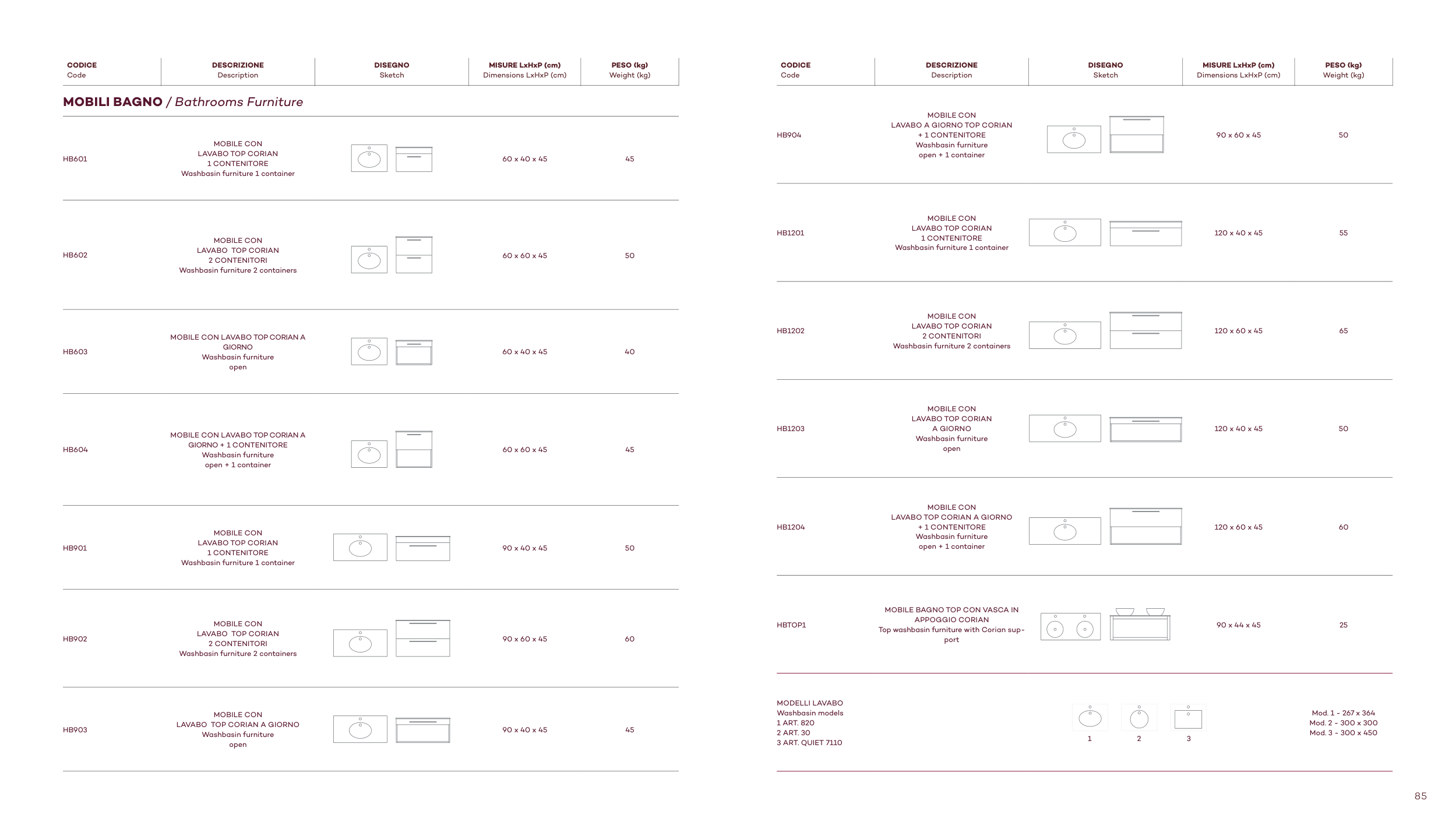 MODELLI LAVABO