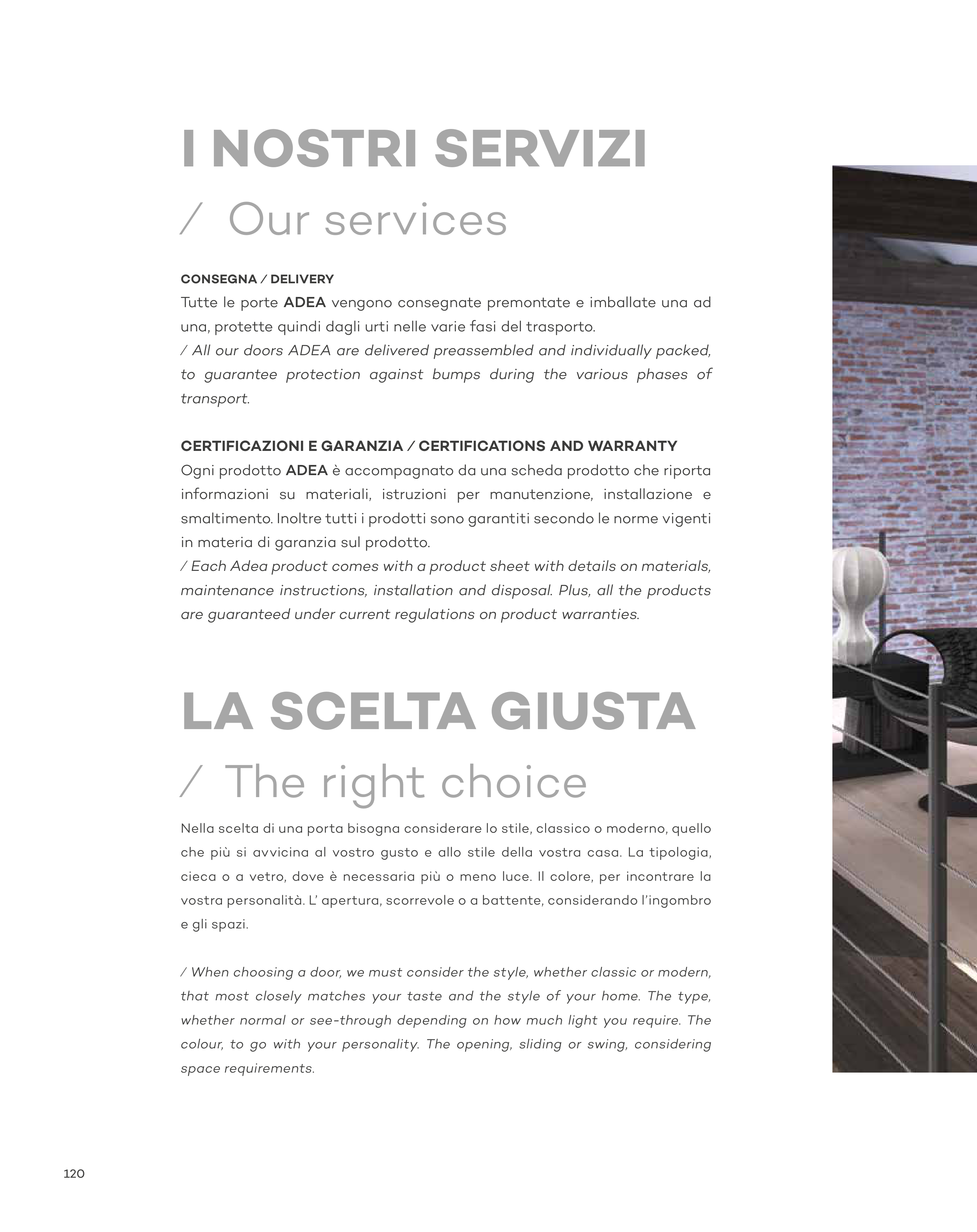 ⁄ All our doors ADEA are delivered preassembled and individually packed,