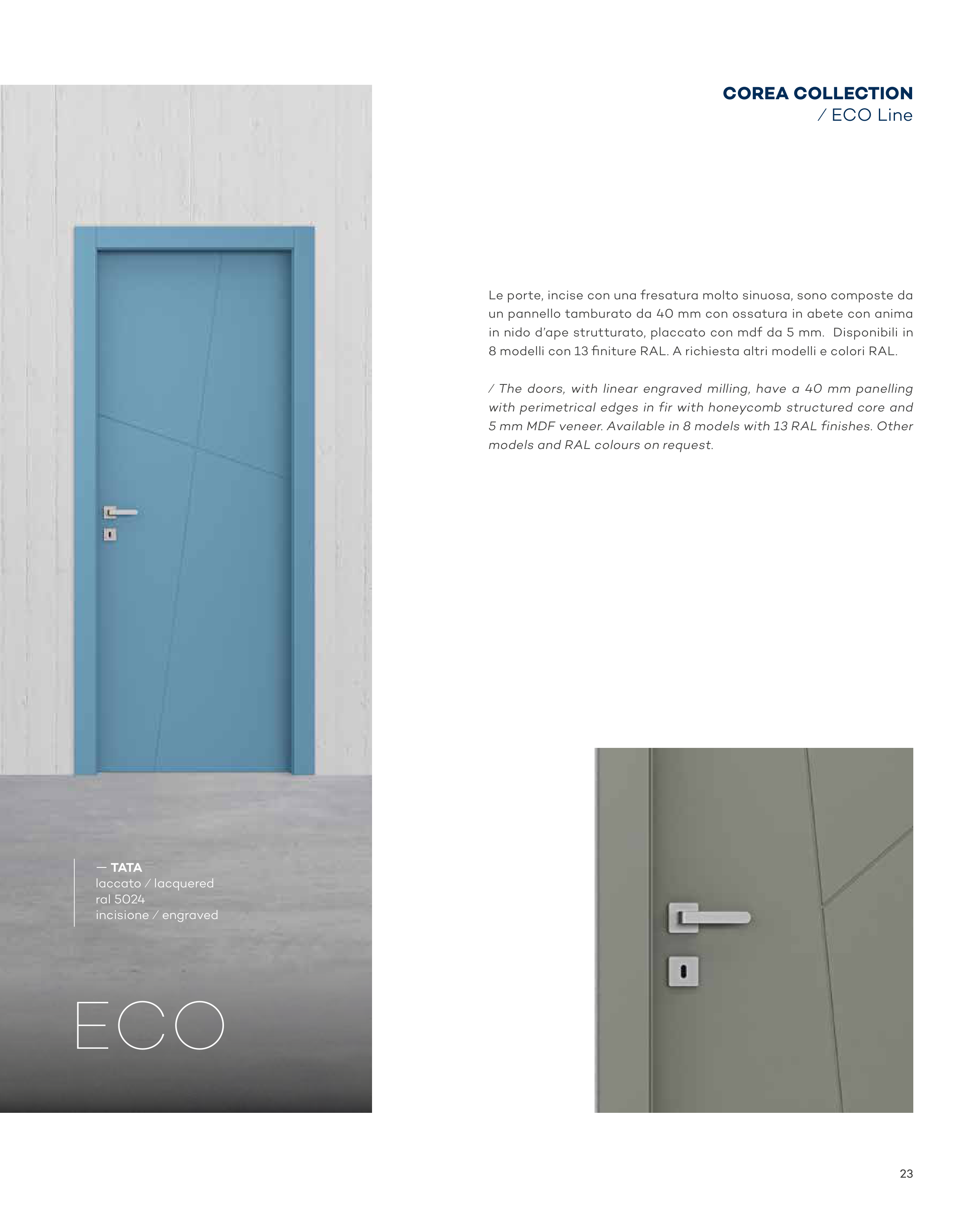 ⁄ The doors, with linear engraved milling, have a 40 mm panelling
