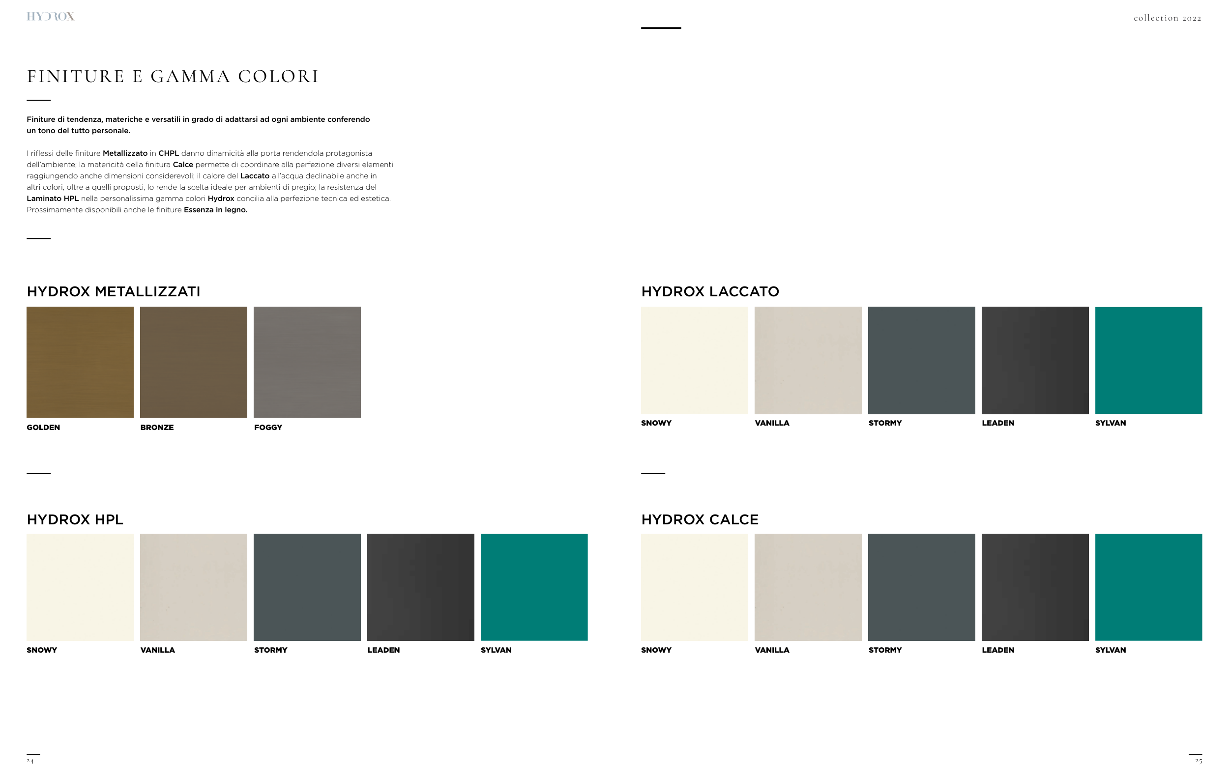FINITURE E GAMMA COLORI