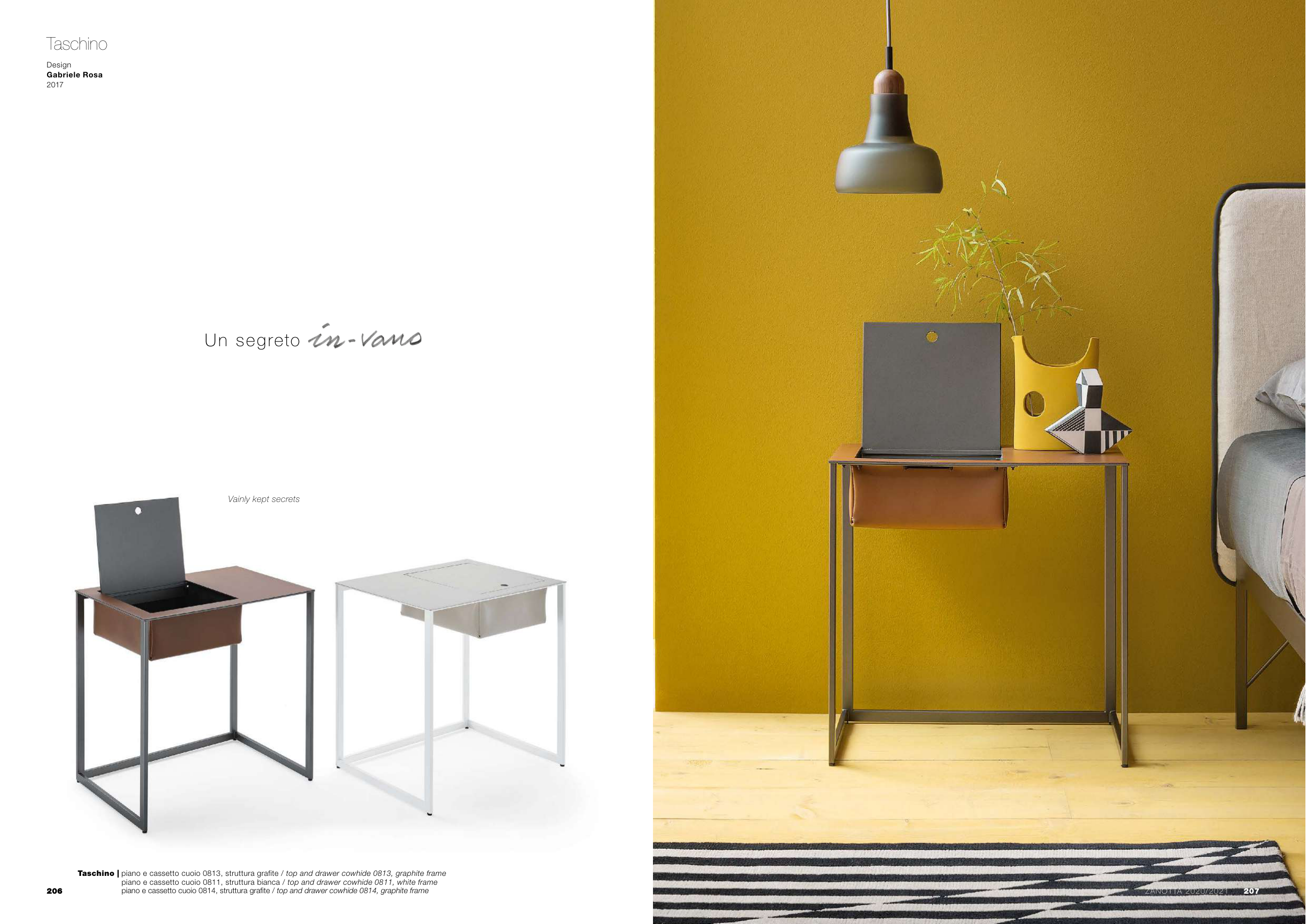 Taschino | piano e cassetto cuoio 0813, struttura grafite / top and drawer cowhide 0813, graphite frame