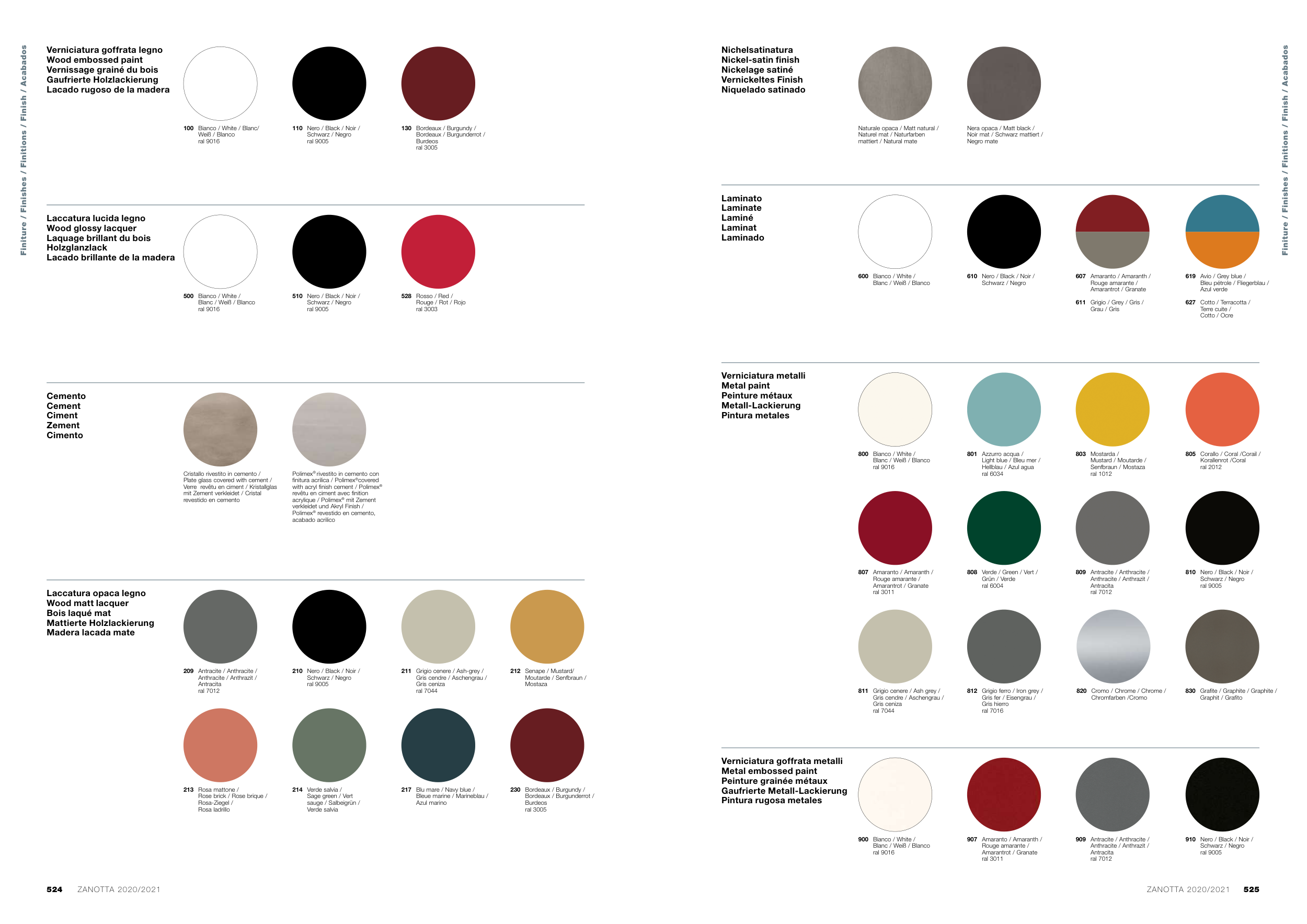 Finiture / Finishes / Finitions / Finish / Acabados