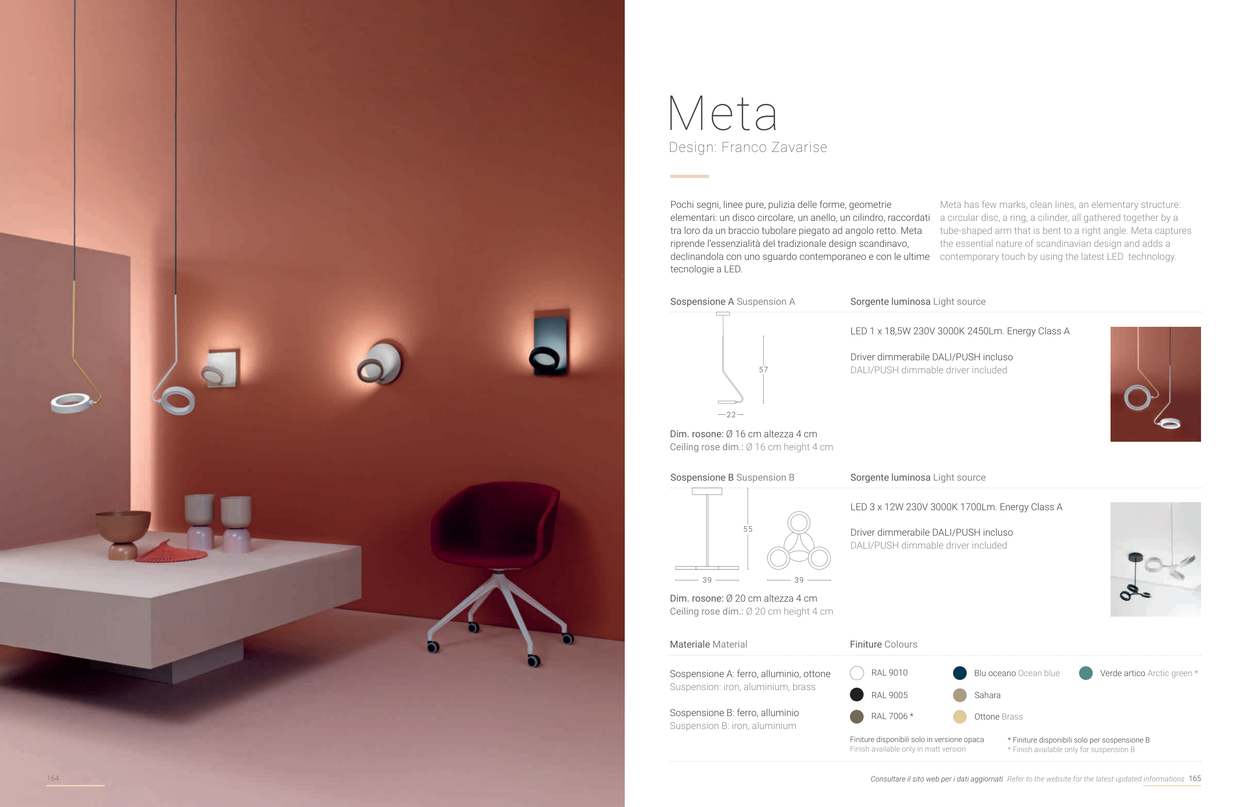 * Finiture disponibili solo per sospensione B