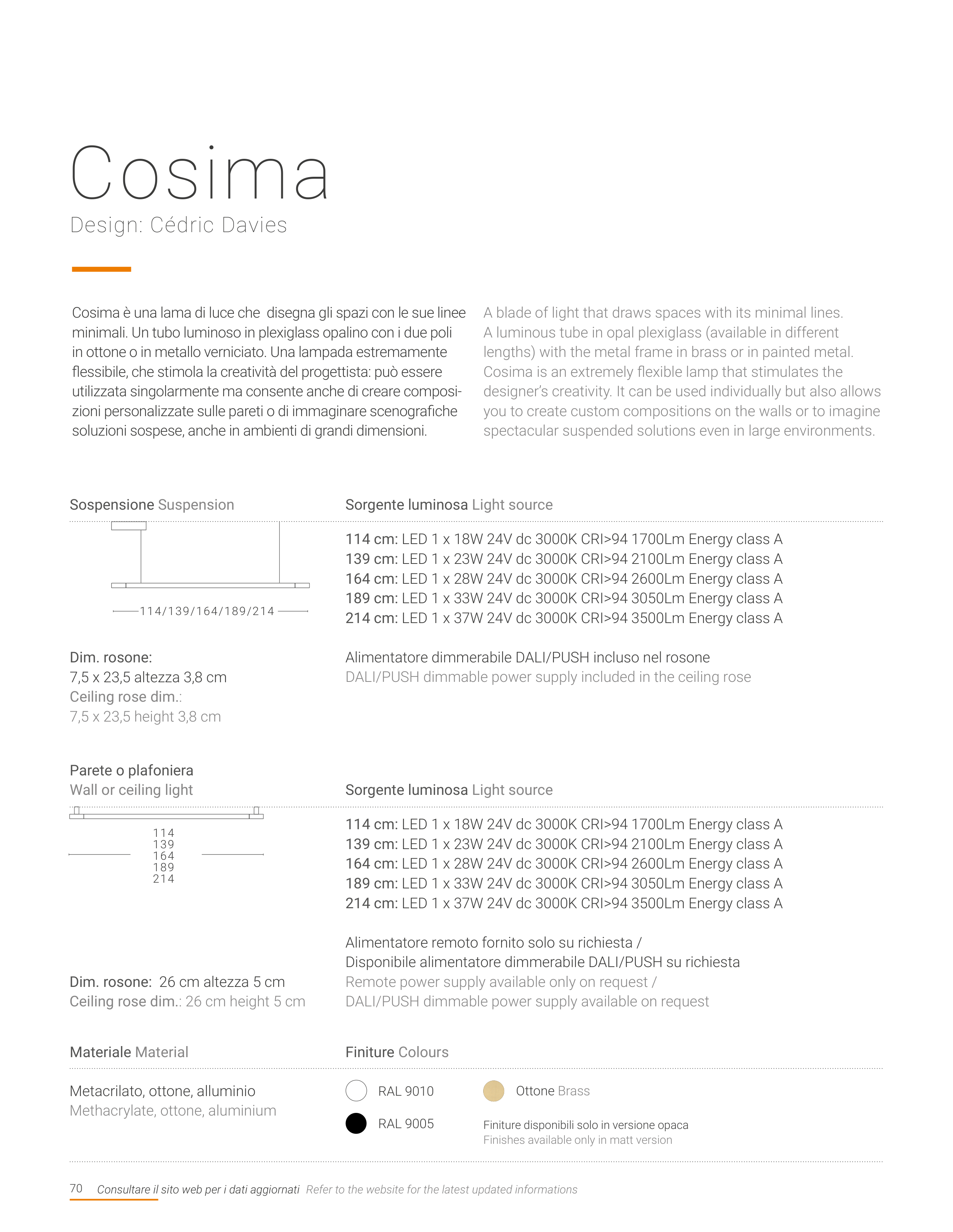 214 cm: LED 1 x 37W 24V dc 3000K CRI>94 3500Lm Energy class A