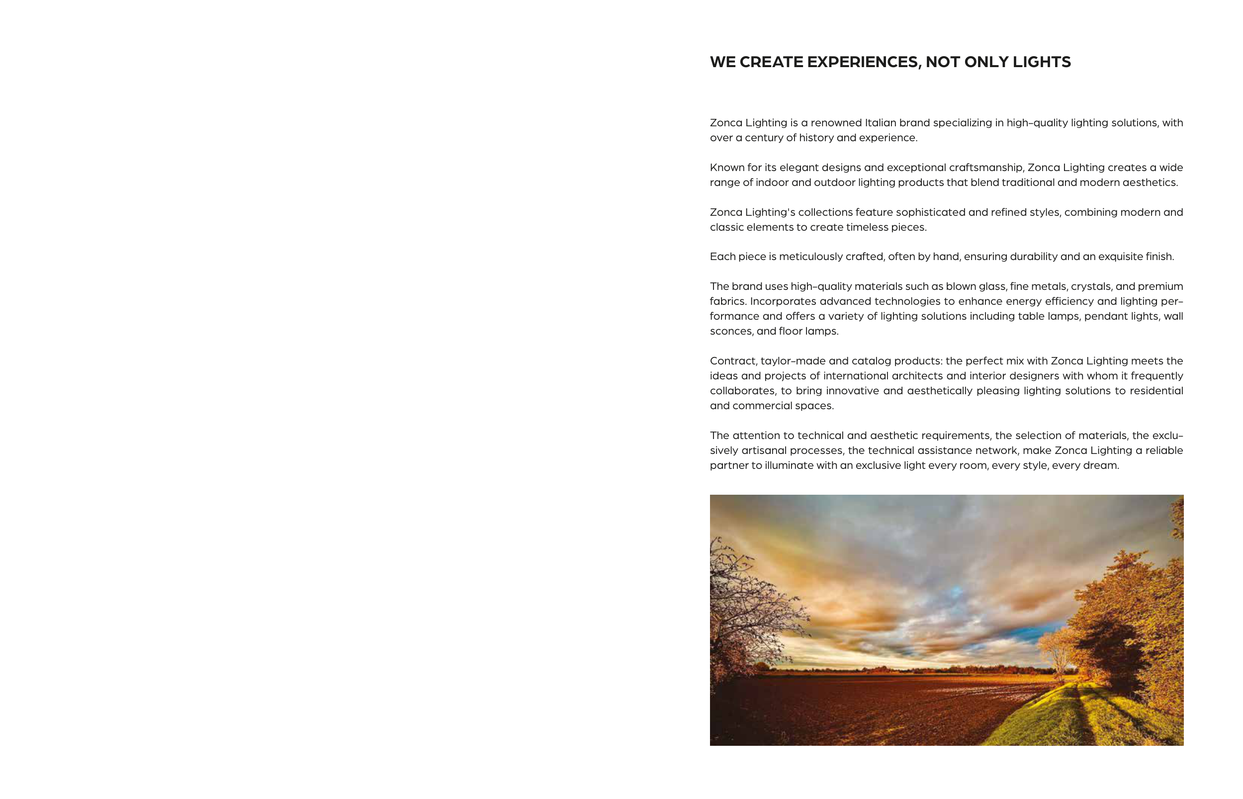 sively artisanal processes, the technical assistance network, make Zonca Lighting a reliable