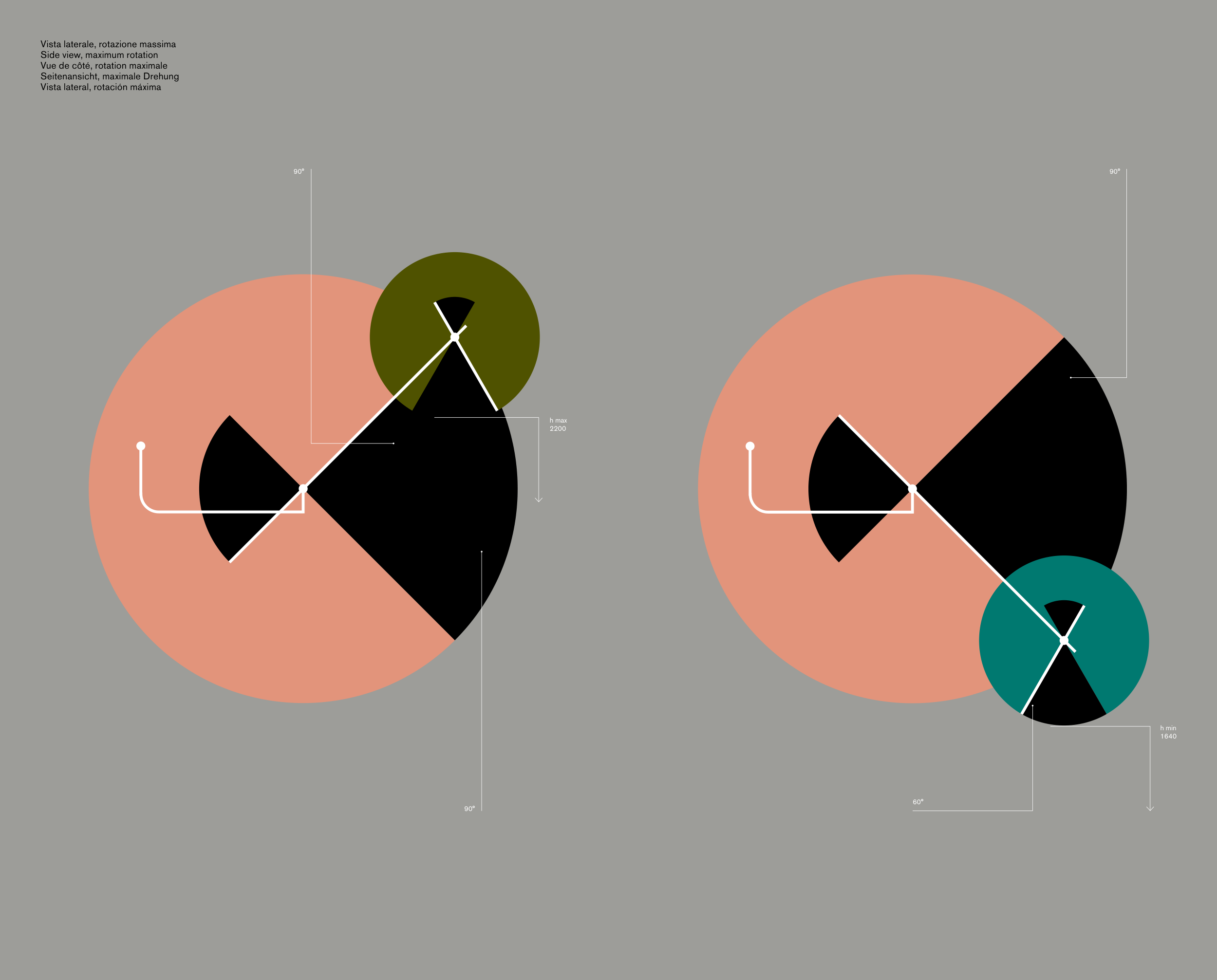 Vista laterale, rotazione massima