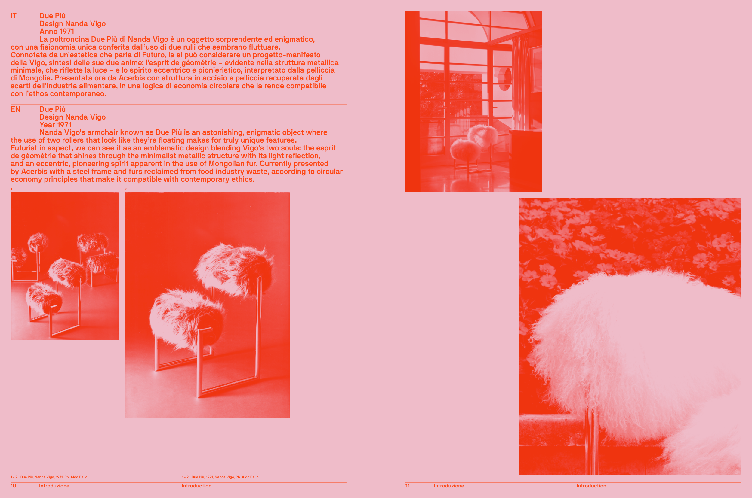 by Acerbis with a steel frame and furs reclaimed from food industry waste, according to circular