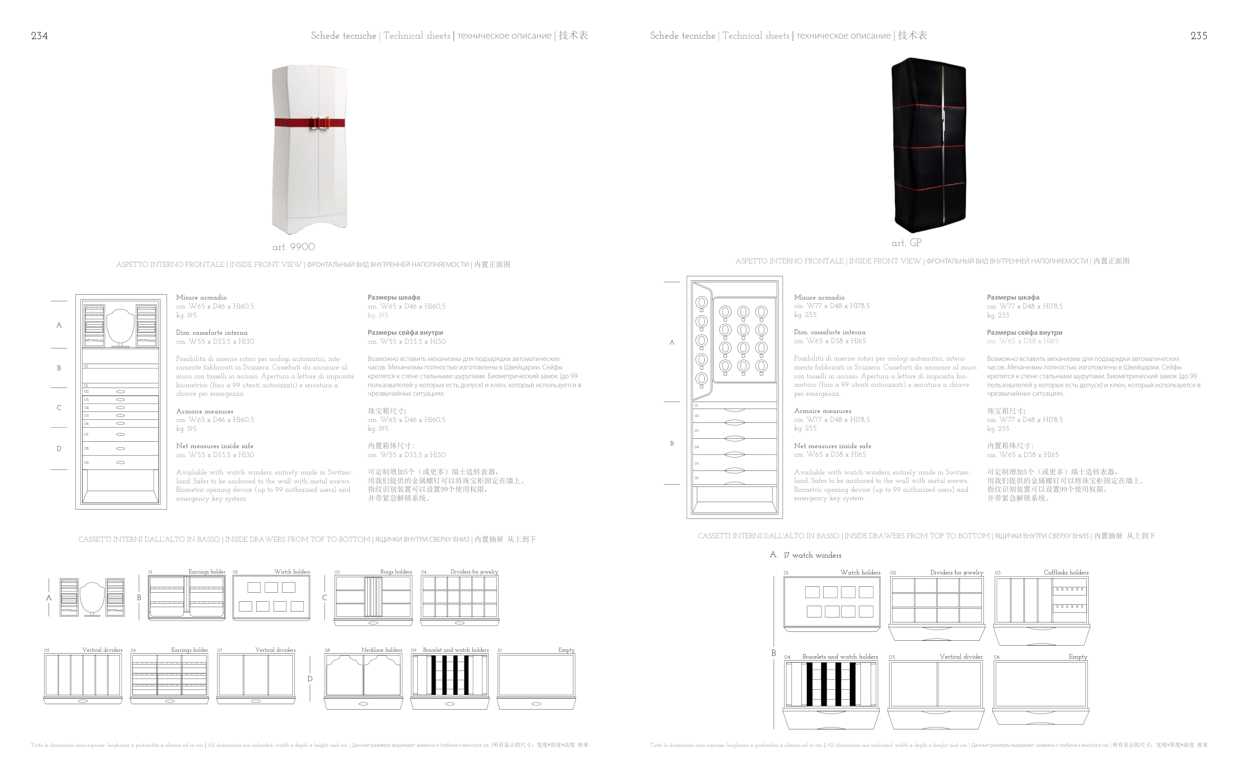 Tutte le dimensioni sono espresse: larghezza x profondità x altezza ed in cm. | All dimensions are indicated: width x depth x height and cm. | Данные размеры выражают: ширина х глубина х высота в см. | 所有显示的尺寸:宽度*厚度*高度 厘米