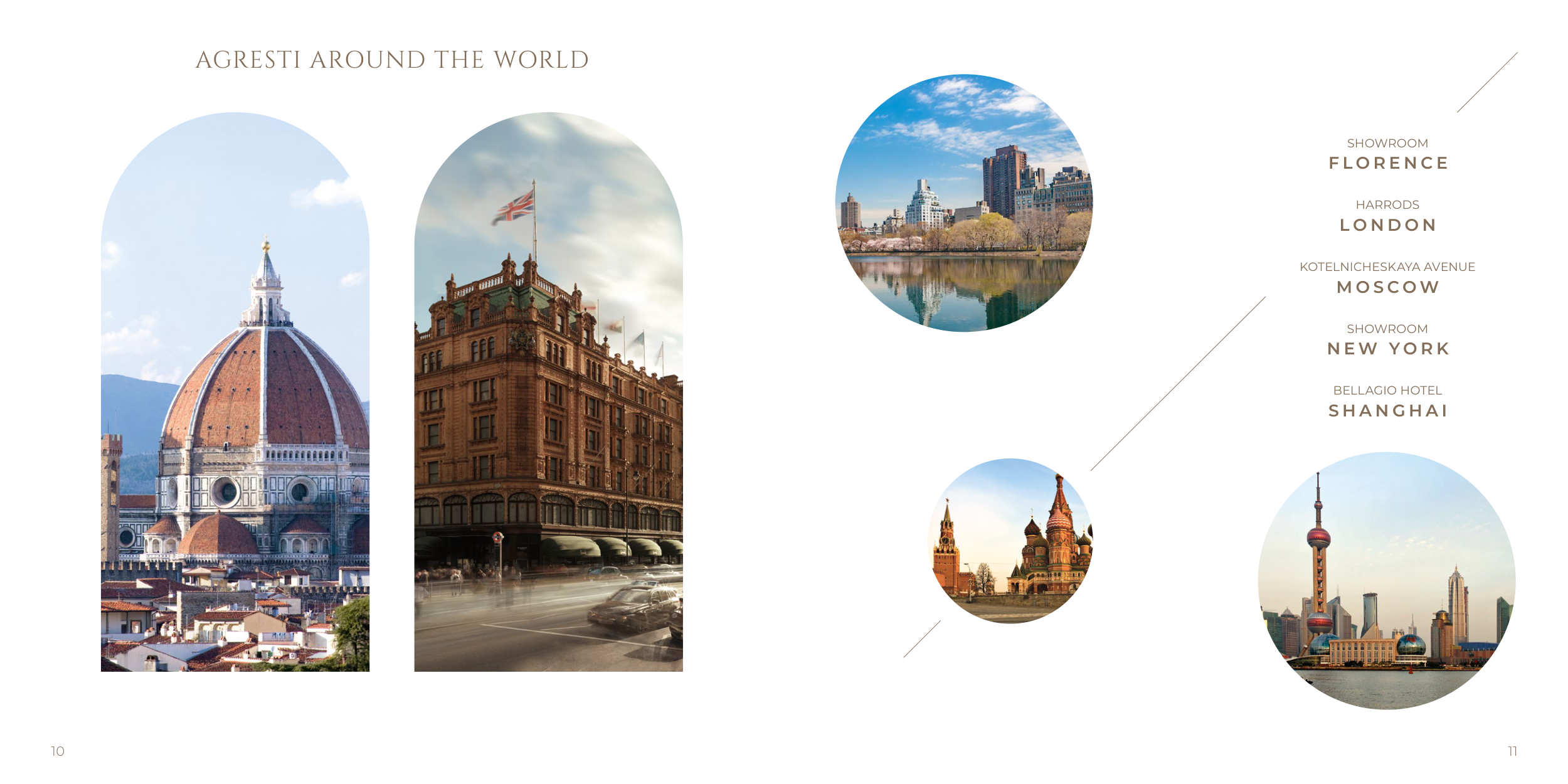 SHOWROOM F L O R E N C E KOTELNICHESKAYA AVENUE M O S C O W HARRODS L O N D O N SHOWROOM N E W Y O R K BELLAGIO HOTEL S H A N G H A I AGRESTI AROUND THE WORLD 10 11