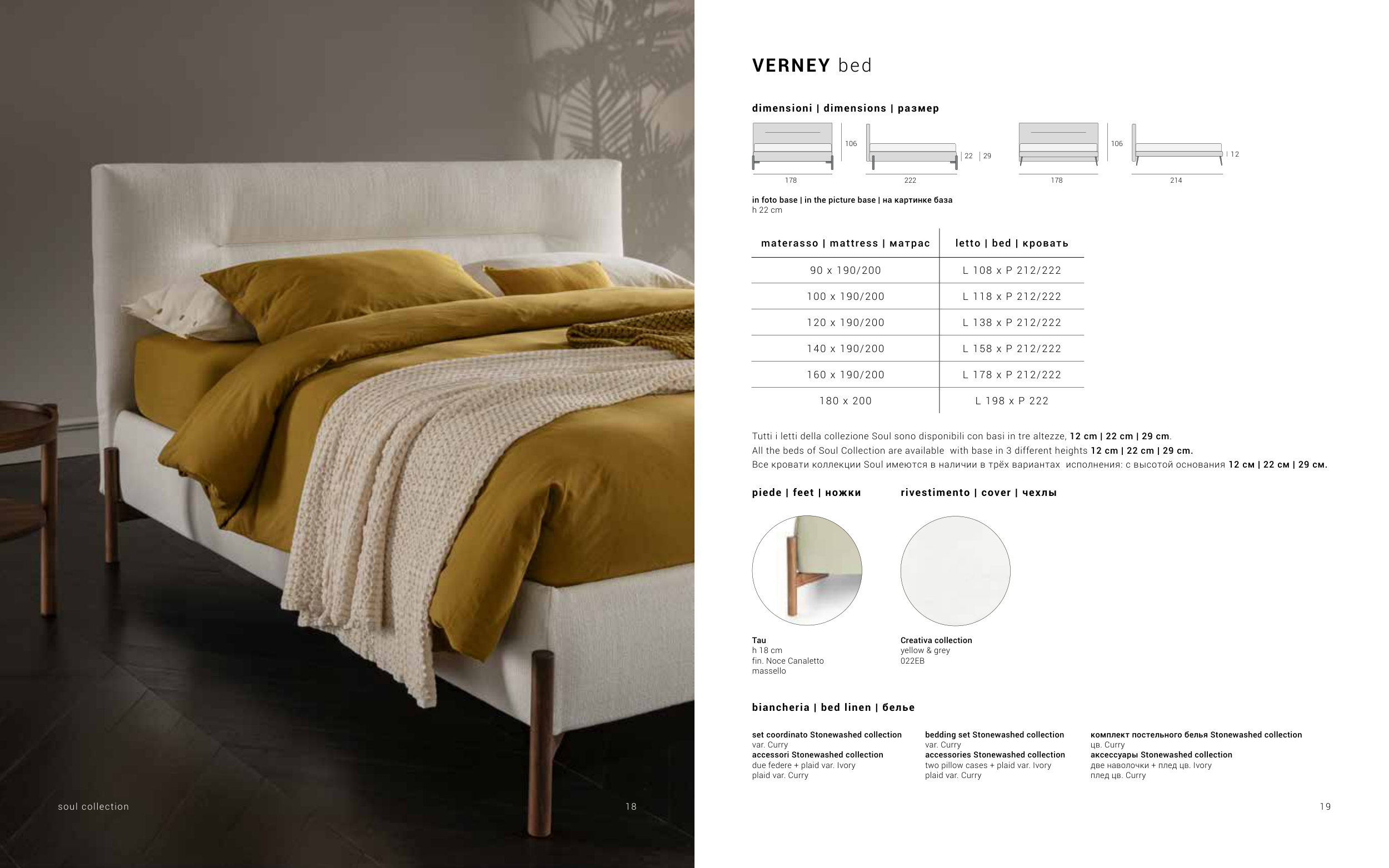 All the beds of Soul Collection are available with base in 3 different heights 12 cm | 22 cm | 29 cm.
