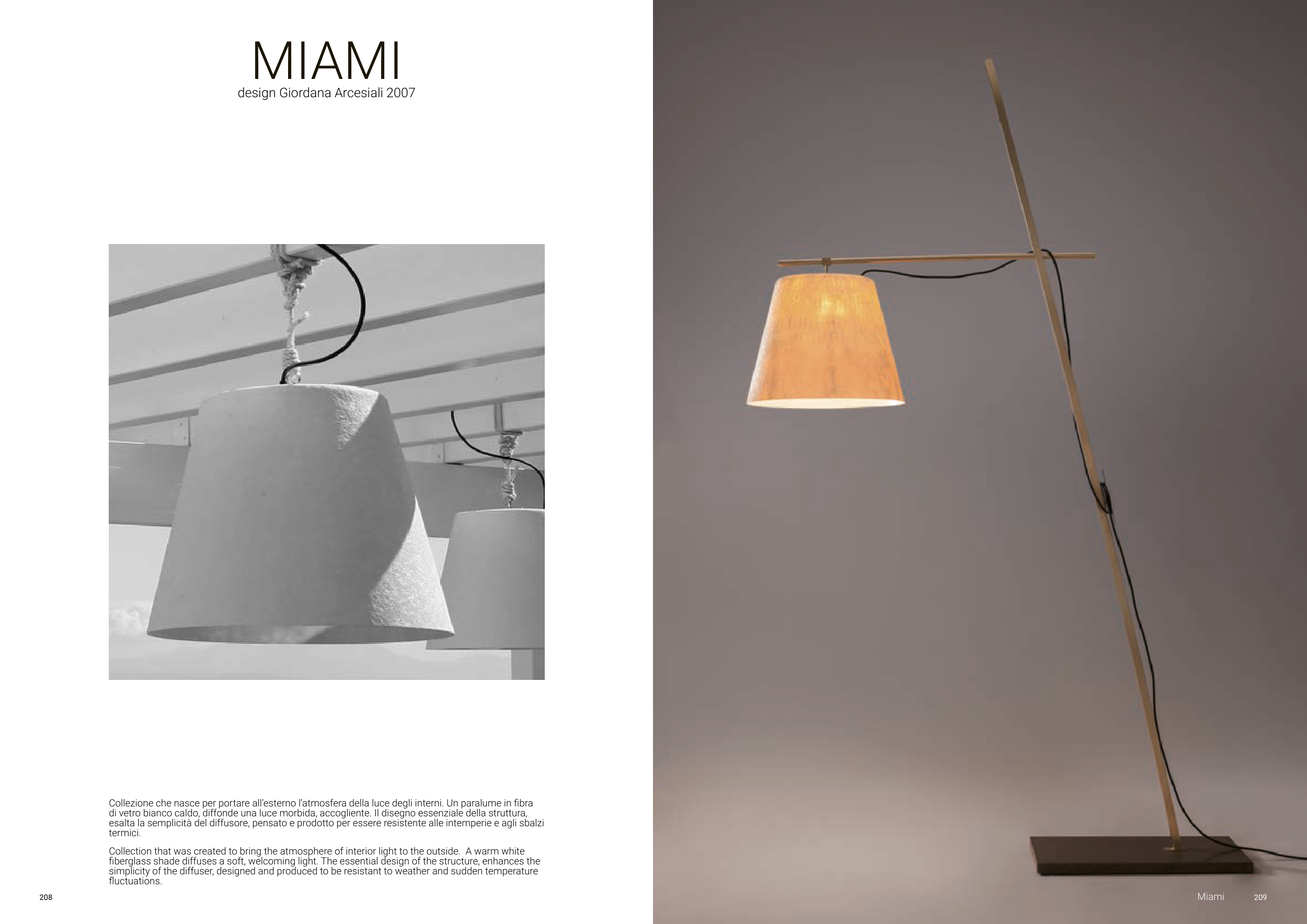 Collezione che nasce per portare all’esterno l’atmosfera della luce degli interni. Un paralume in fibra