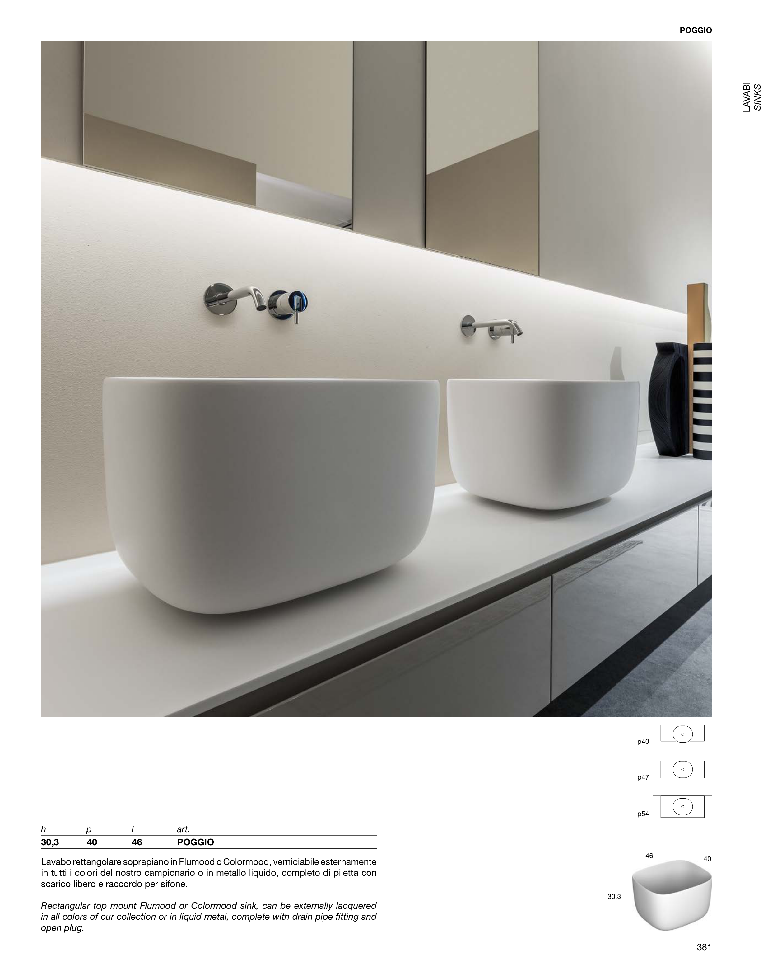 Rectangular top mount Flumood or Colormood sink, can be externally lacquered