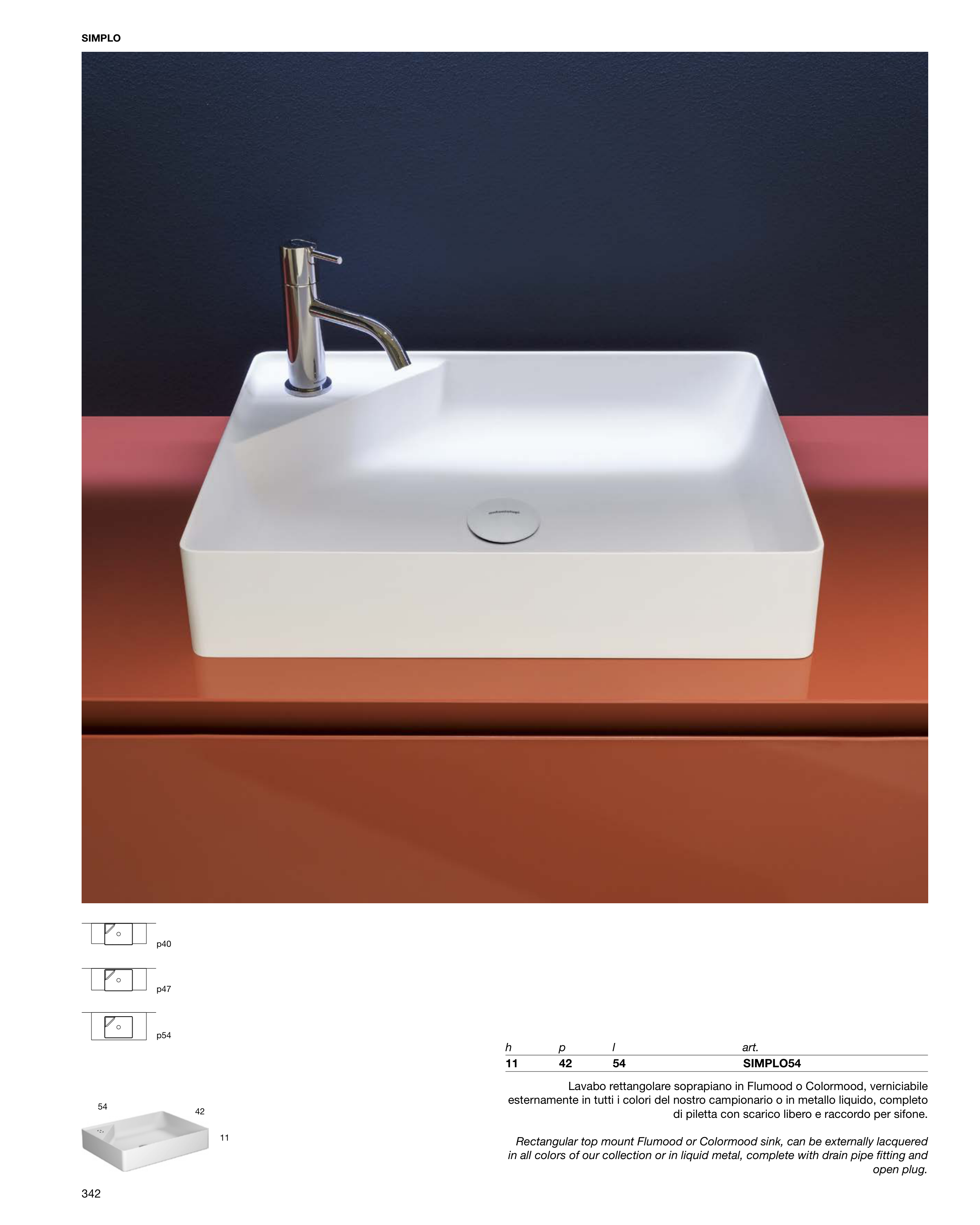 Rectangular top mount Flumood or Colormood sink, can be externally lacquered