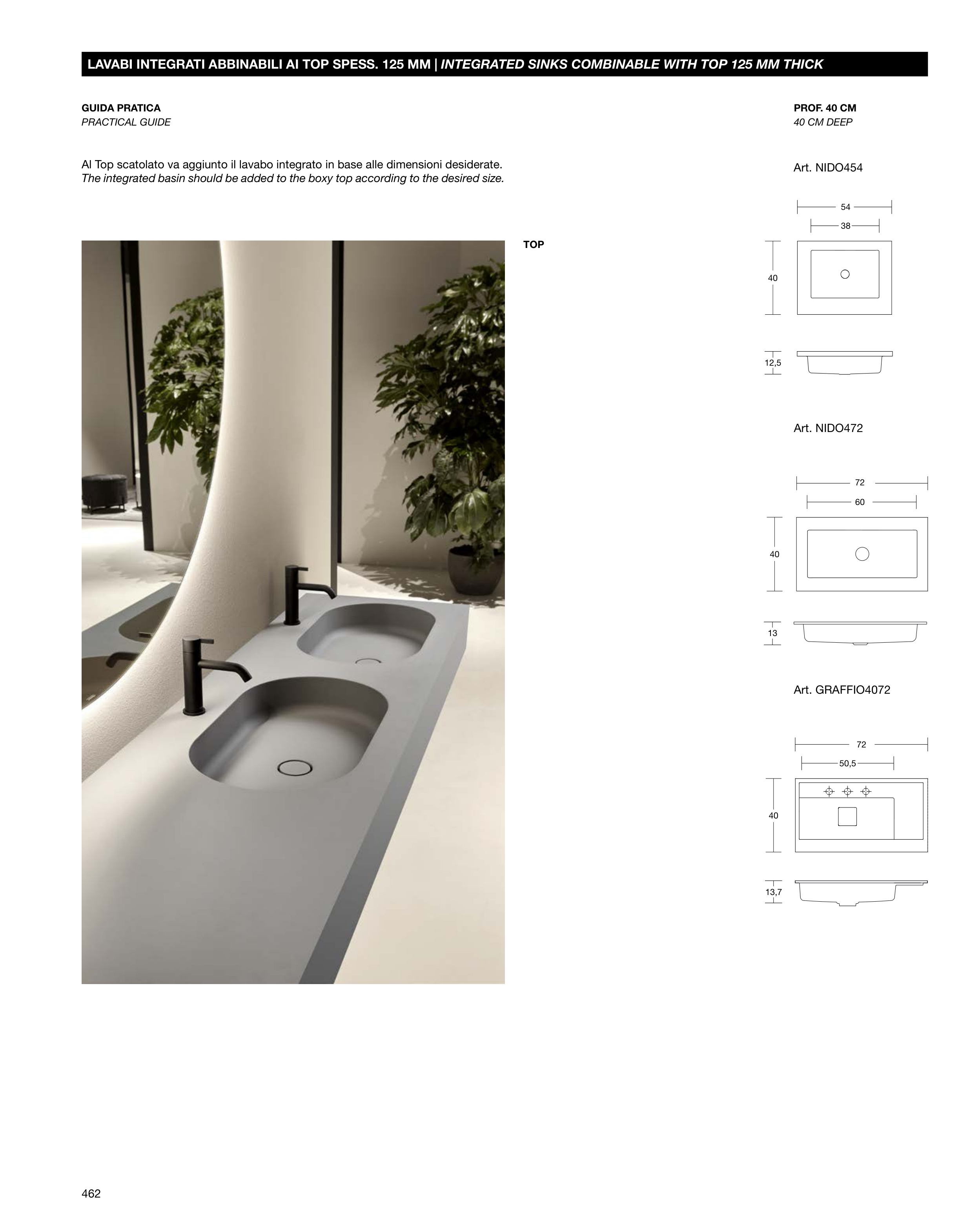LAVABI INTEGRATI ABBINABILI AI TOP SPESS. 125 MM | INTEGRATED SINKS COMBINABLE WITH TOP 125 MM THICK