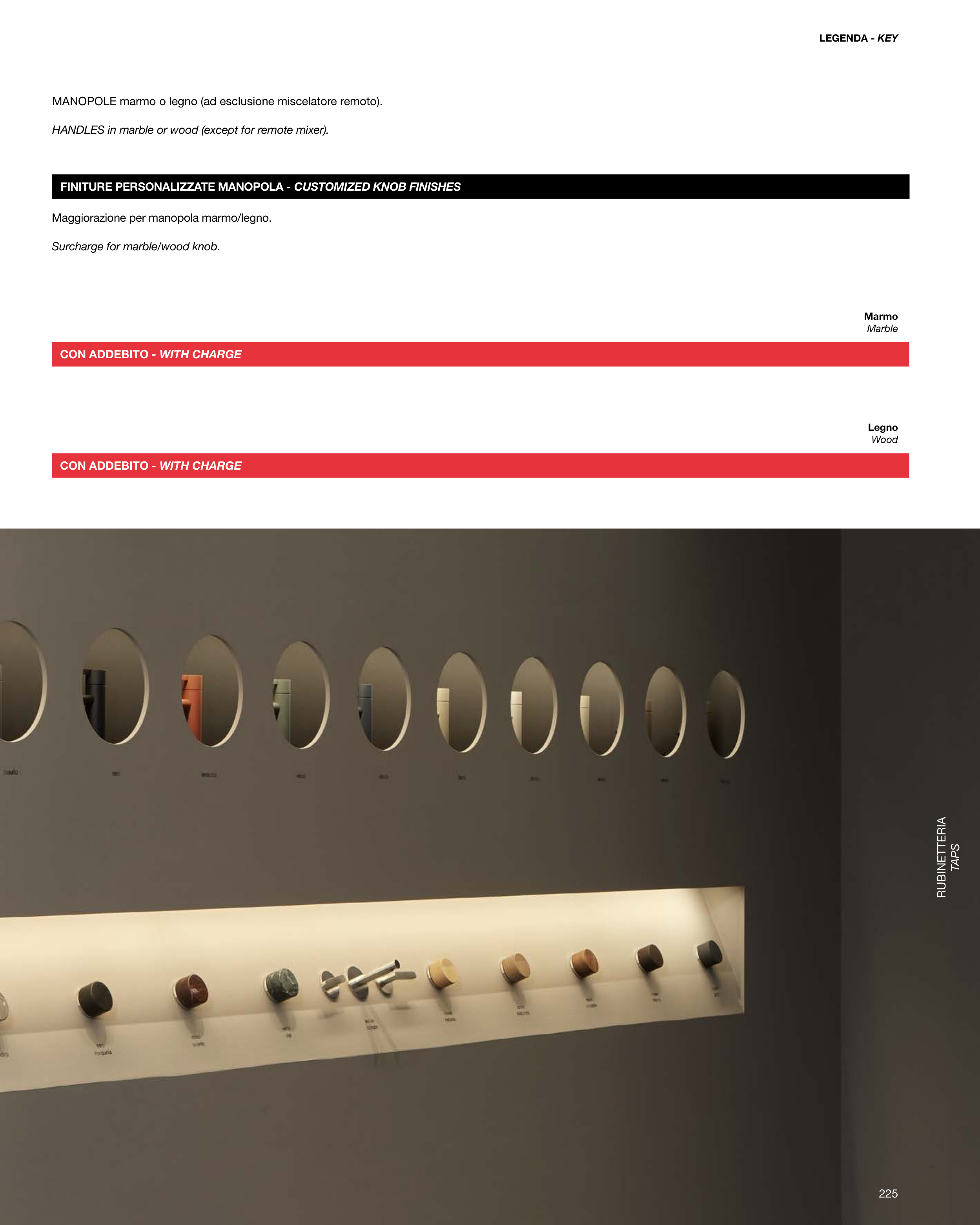 HANDLES in marble or wood (except for remote mixer).