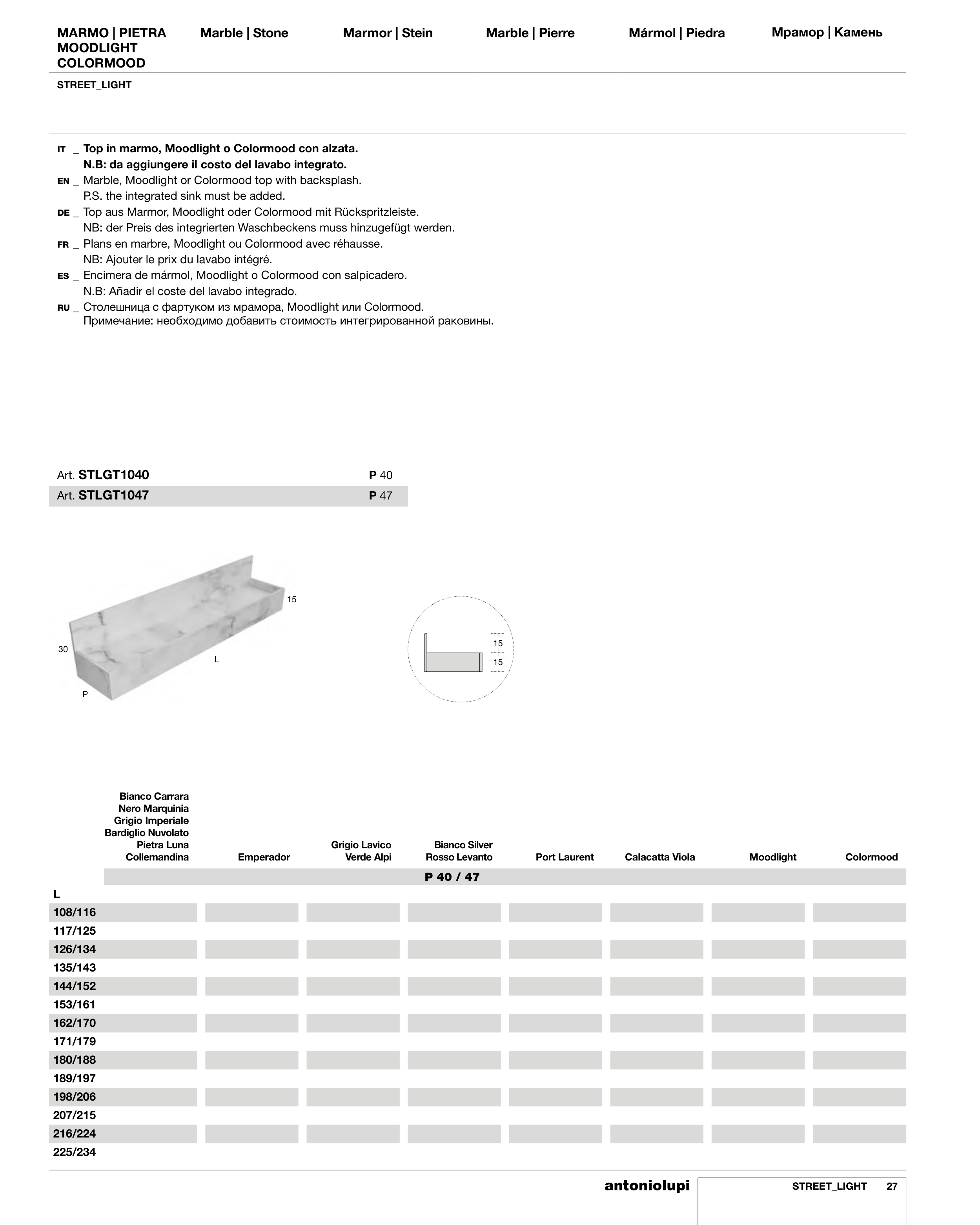 IT _ Top in marmo, Moodlight o Colormood con alzata.