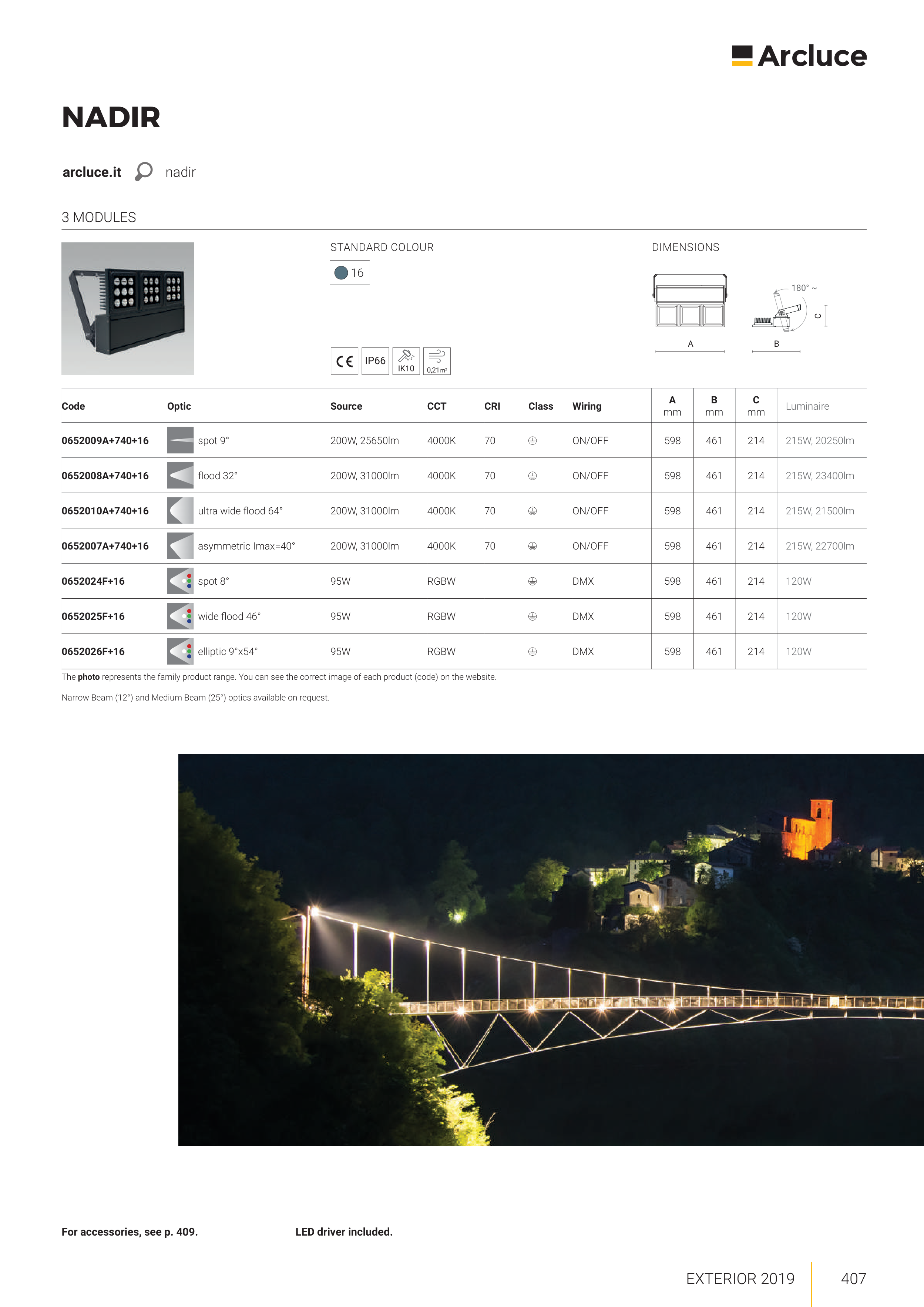 Narrow Beam (12°) and Medium Beam (25°) optics available on request.