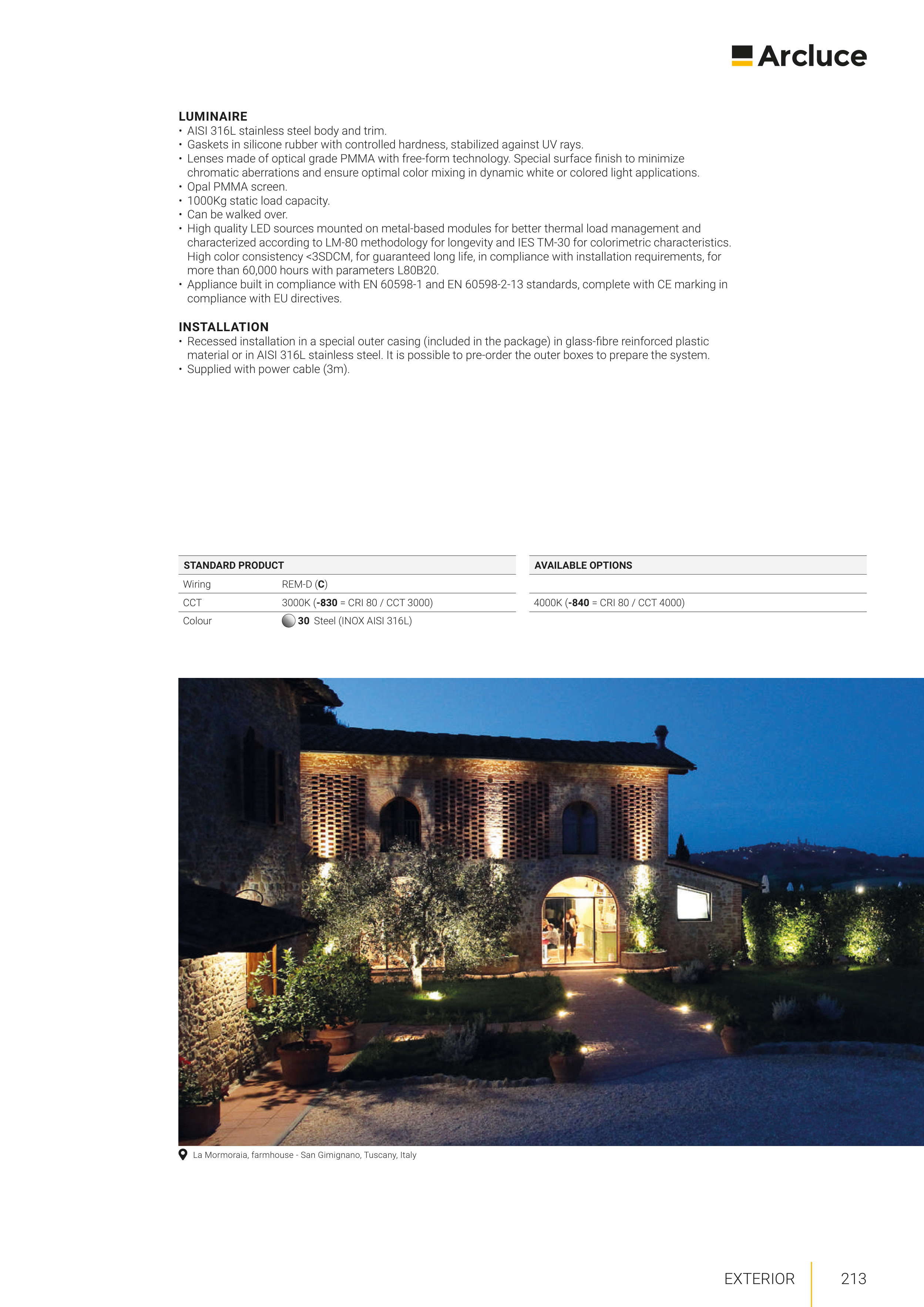 • Appliance built in compliance with EN 60598-1 and EN 60598-2-13 standards, complete with CE marking in