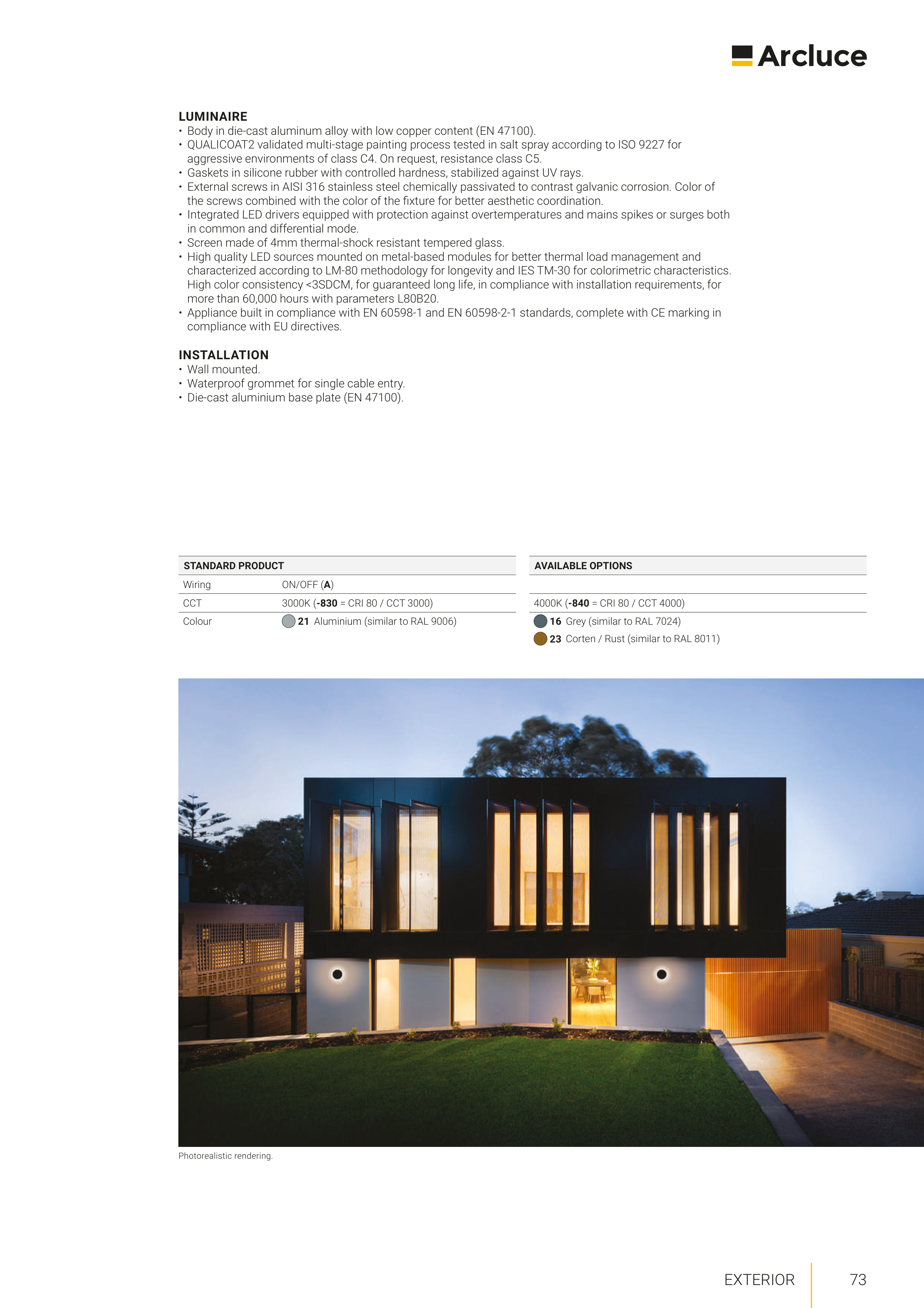 • QUALICOAT2 validated multi-stage painting process tested in salt spray according to ISO 9227 for