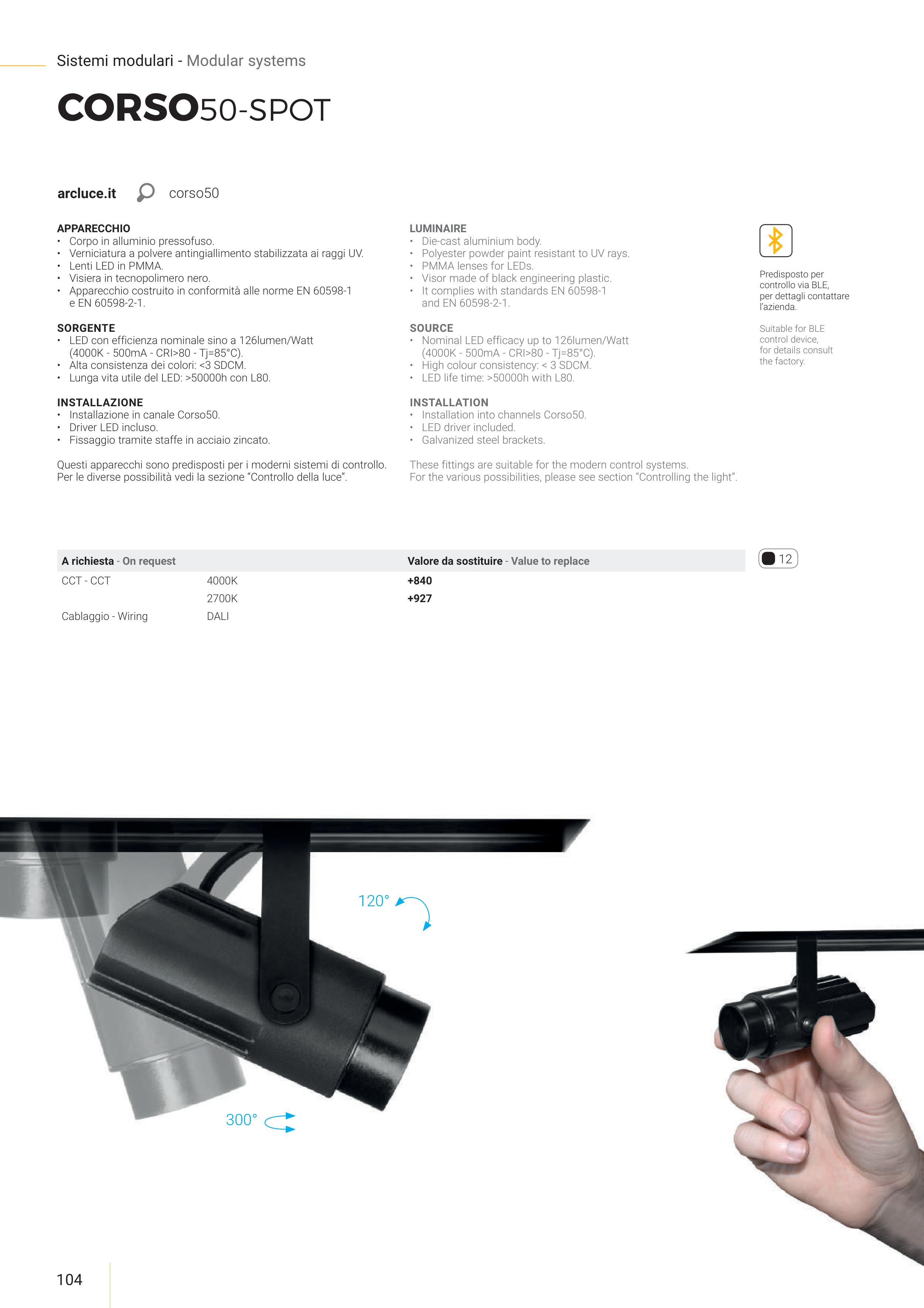 • Lunga vita utile del LED: >50000h con L80.