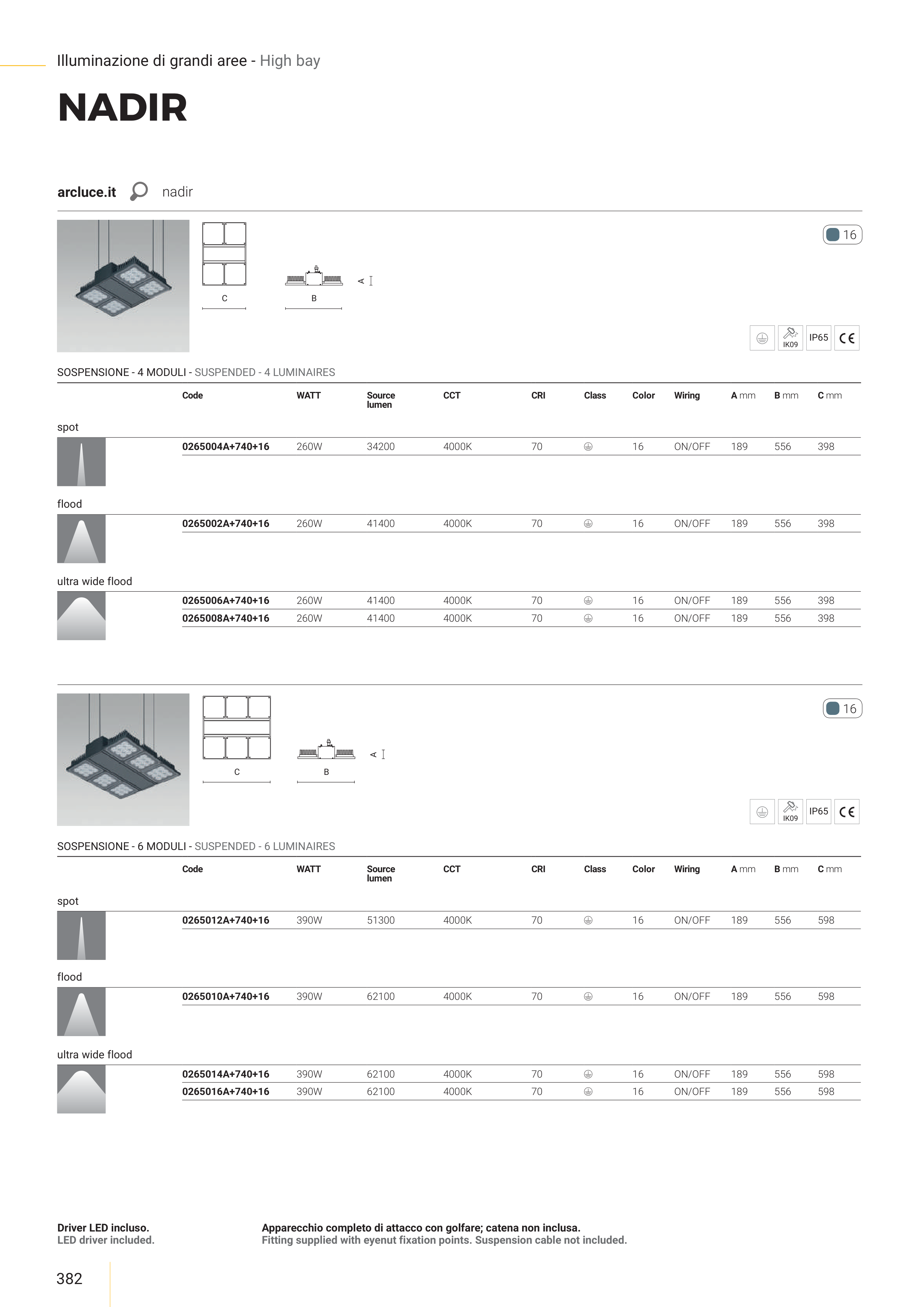 SOSPENSIONE - 4 MODULI - SUSPENDED - 4 LUMINAIRES