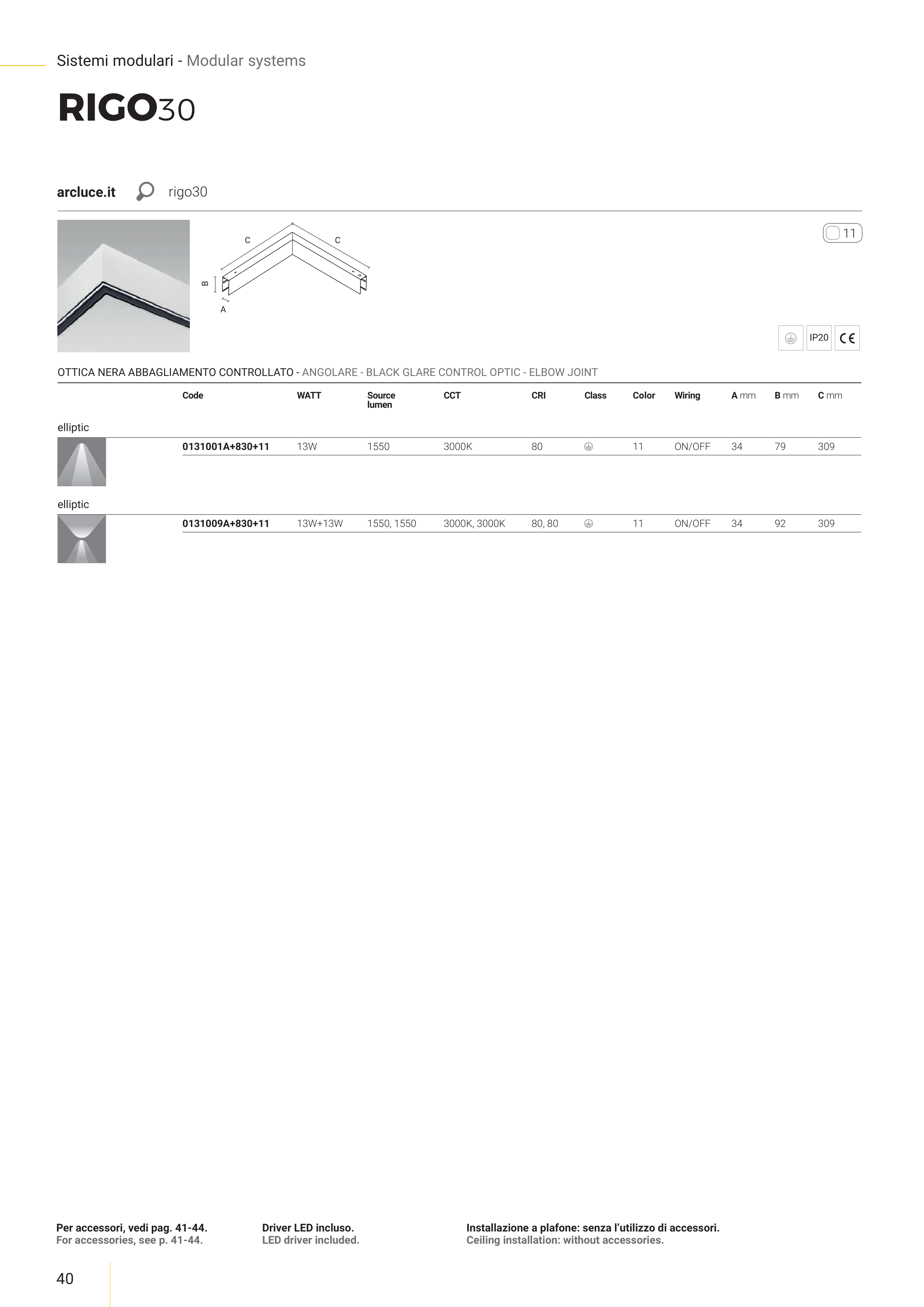 OTTICA NERA ABBAGLIAMENTO CONTROLLATO - ANGOLARE - BLACK GLARE CONTROL OPTIC - ELBOW JOINT