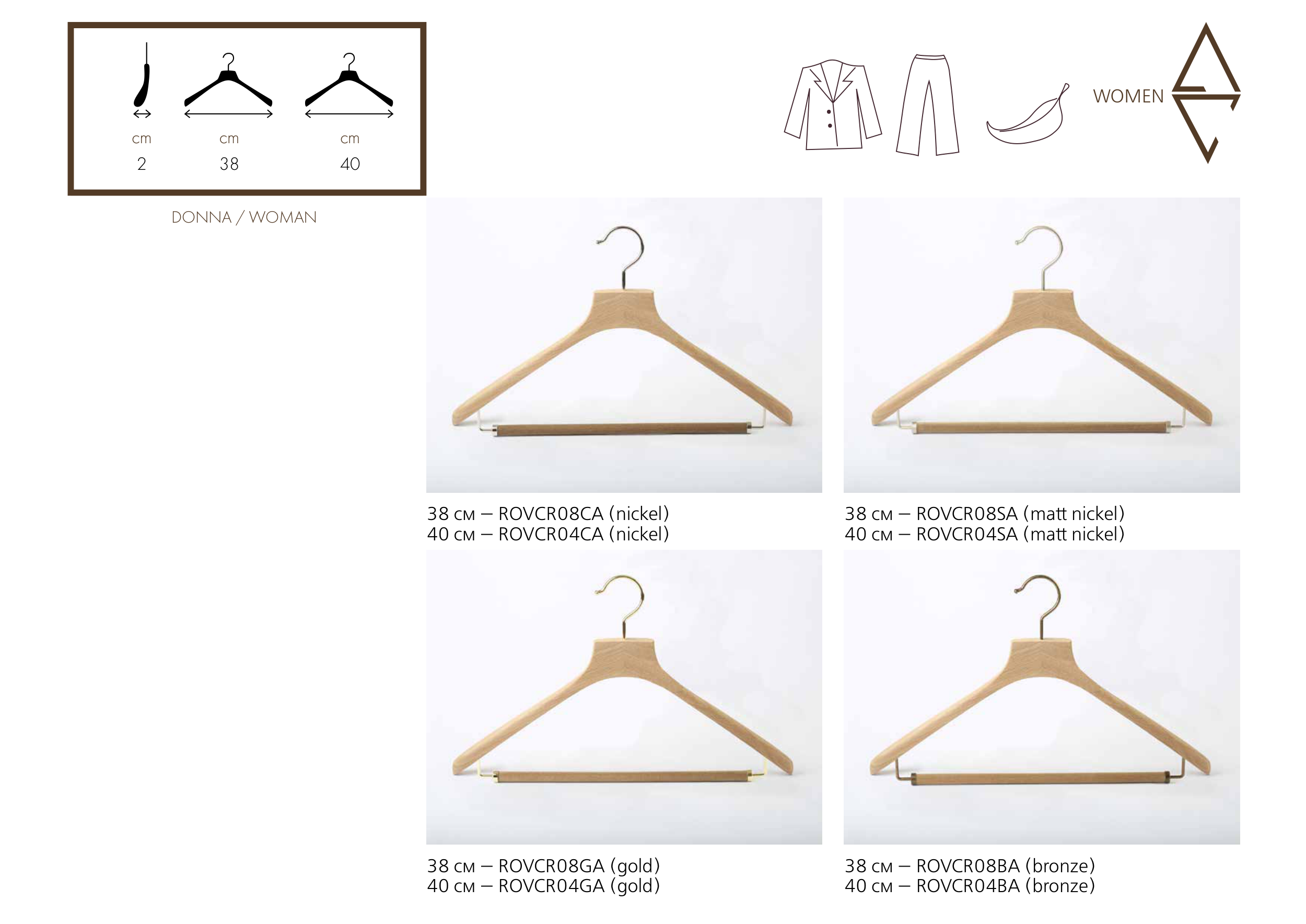 WOMEN 38 см — ROVСR08CA (nickel) 40 см — ROVСR04CA (nickel) 38 см — ROVCR08GA (gold) 40 см — ROVCR04GA (gold) 38 см — ROVCR08SA (matt nickel) 40 см — ROVCR04SA (matt nickel) 38 см — ROVCR08BA (bronze) 40 см — ROVCR04BA (bronze) cm 2 DONNA / WOMAN cm 40 cm 38