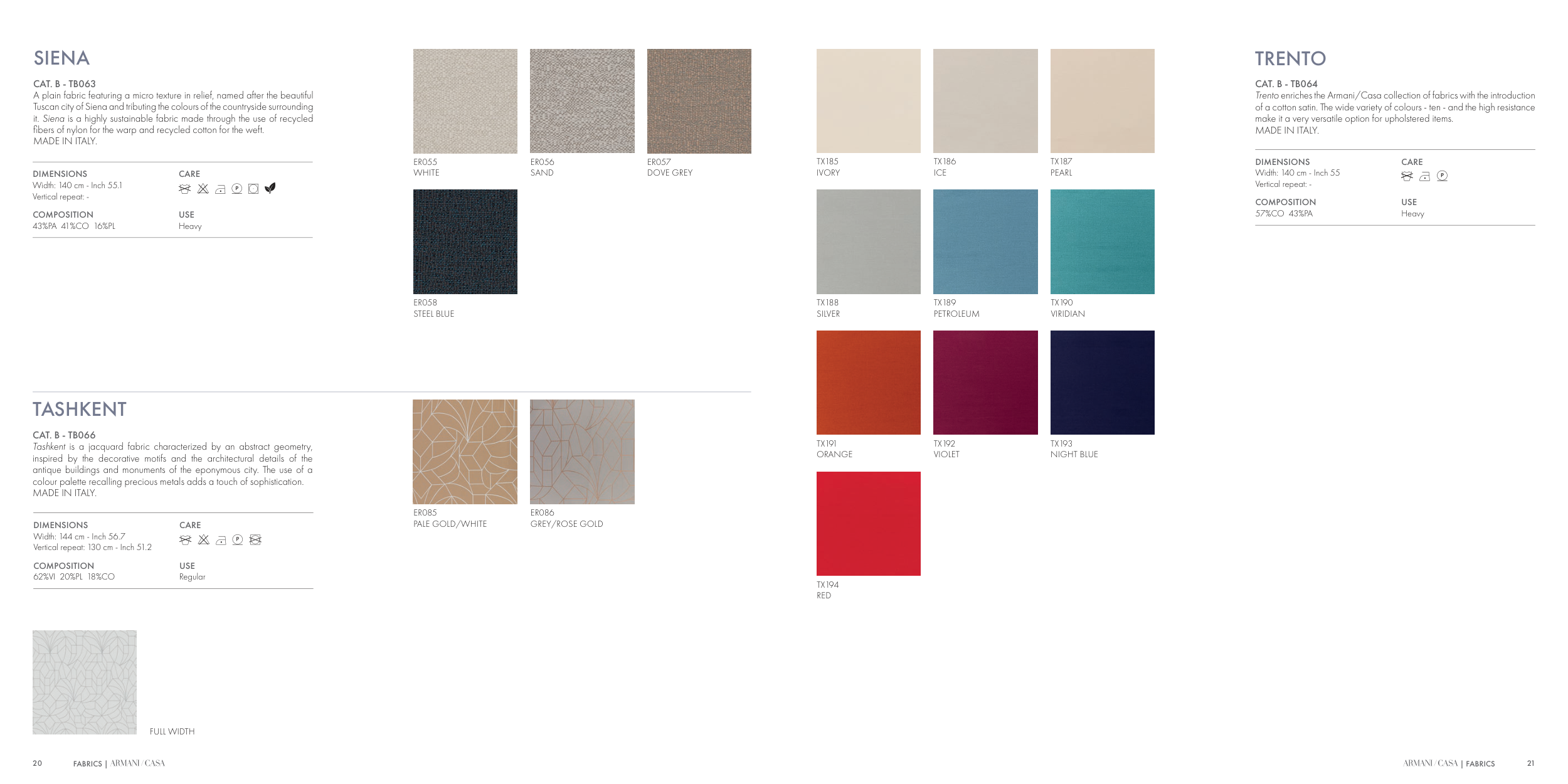 Trento enriches the Armani/Casa collection of fabrics with the introduction